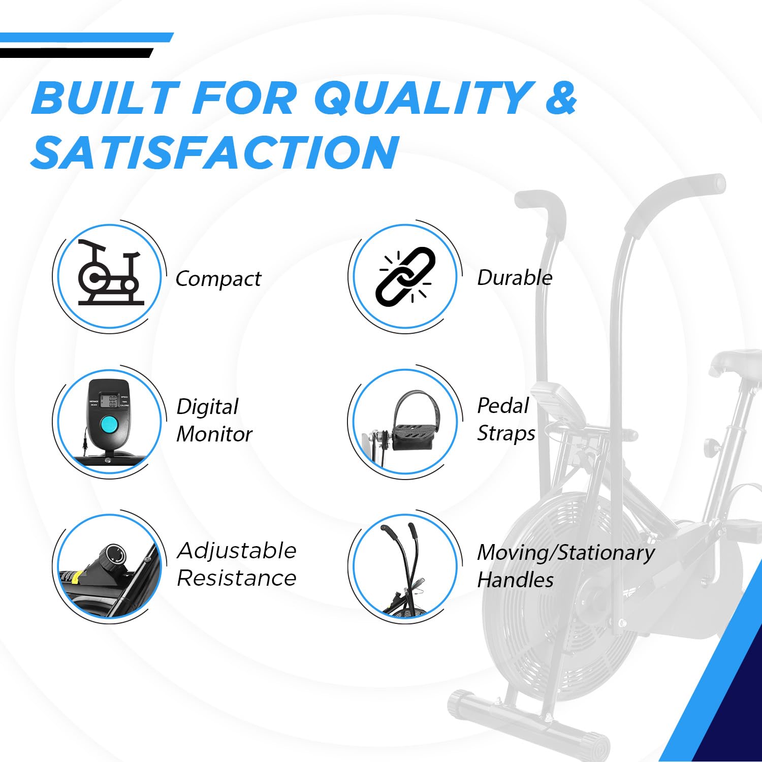 Reach AB-110 Air Bike Exercise Cycle with Moving or Stationary Handle | Adjustable Resistance with Cushioned Seat | Fitness Cycle for Home Gym