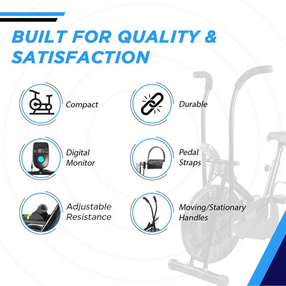 AB-110 Air Bike Exercise Cycle with Moving or Stationary Handle | Adjustable Resistance with Cushioned Seat | Fitness Cycle for Home Gym