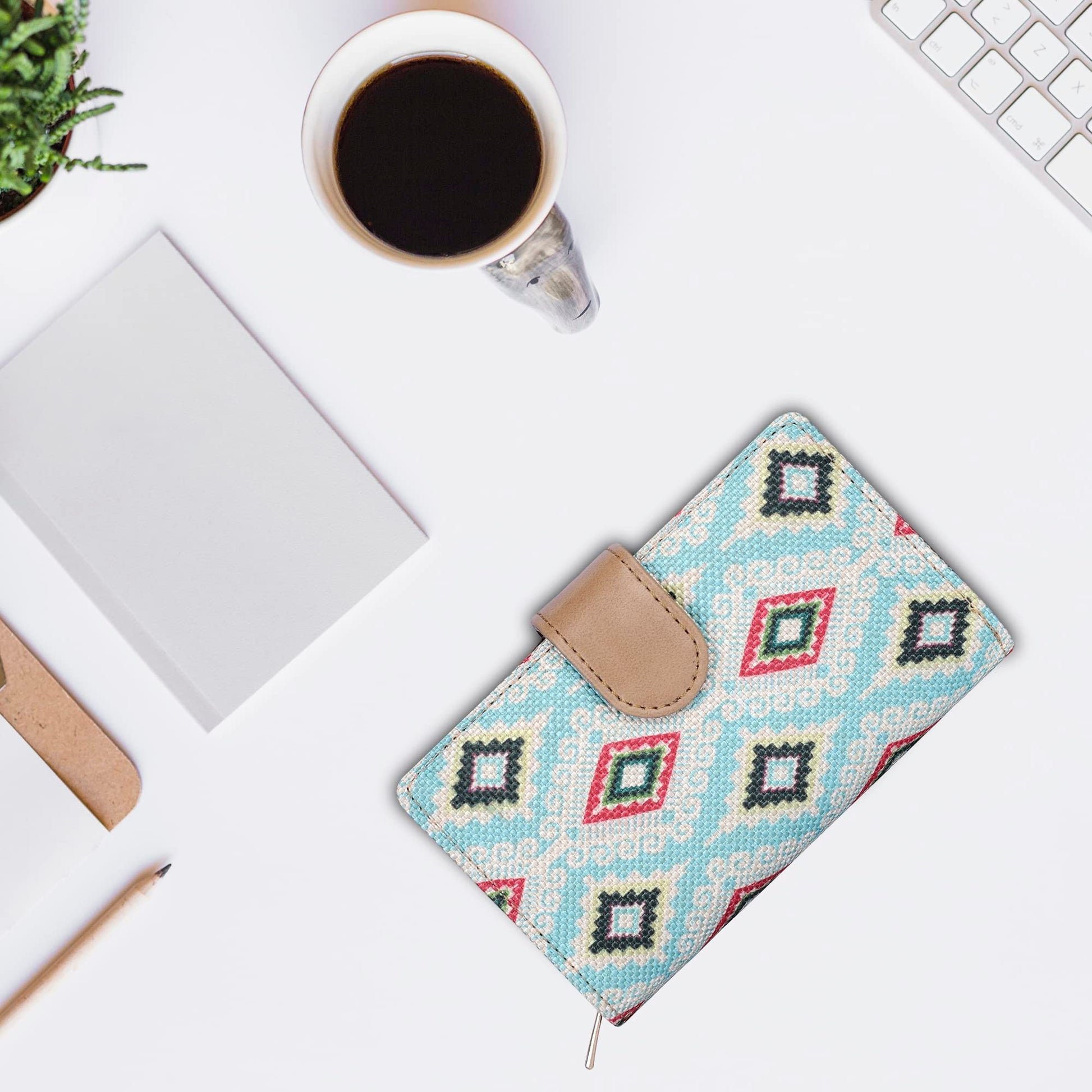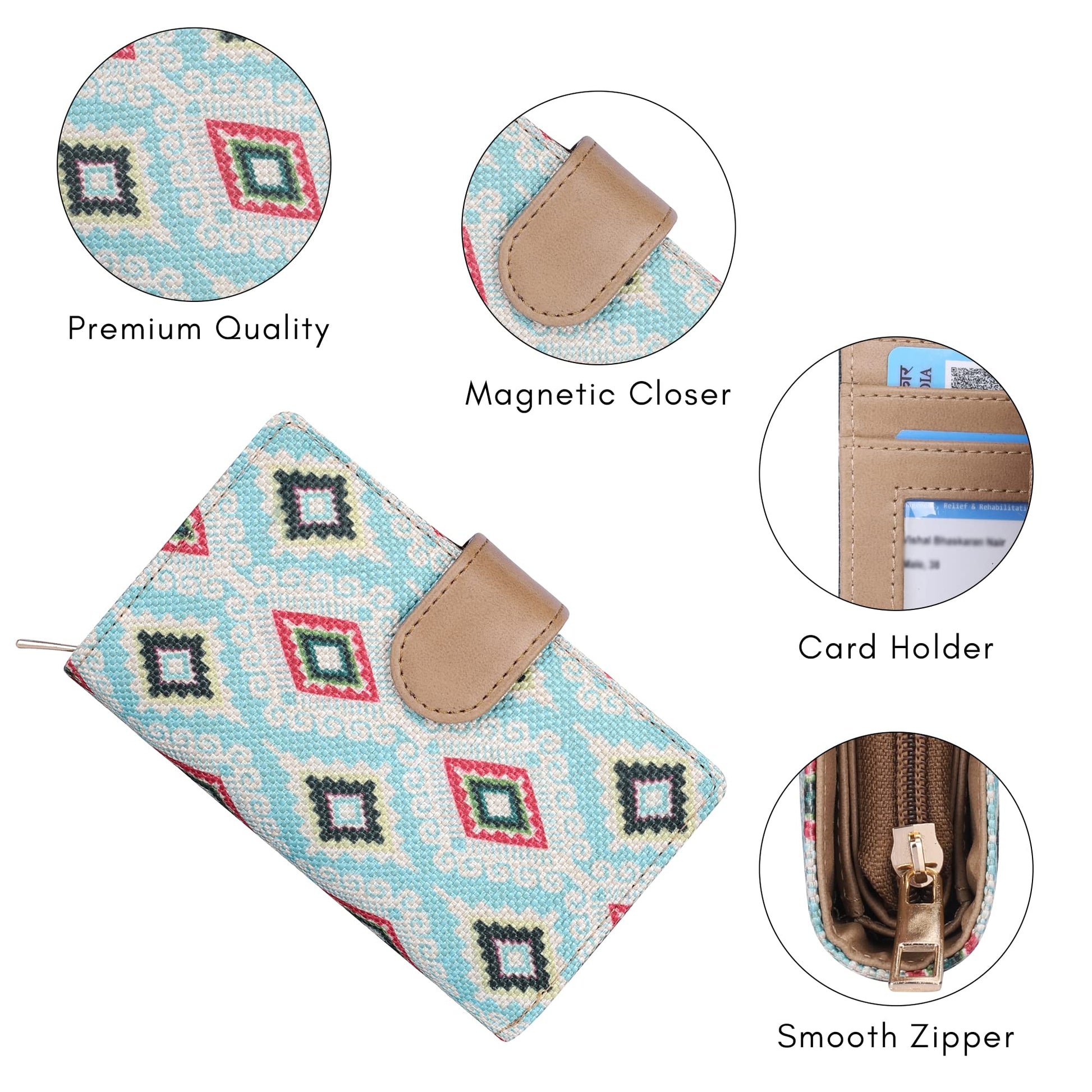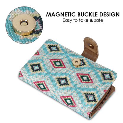 - ATTRACTIVE DESIGN: Crafted with high-quality printed handicraft fabric and vegan leather, this wallet showcases an elegant appearance suitable for any attire.