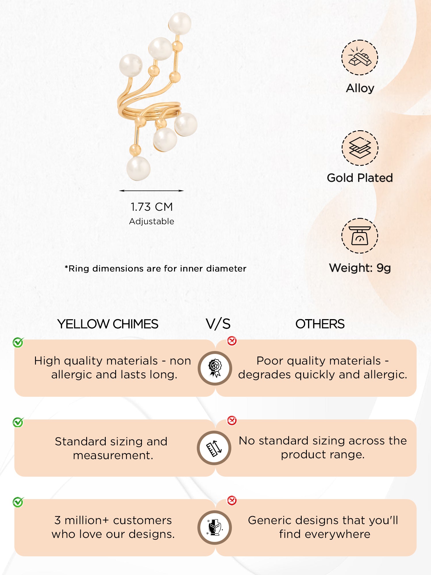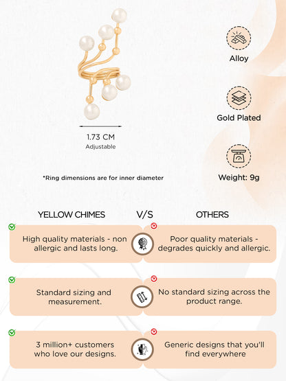 Fashion Adjustable Golden Pearl Ring for Women | Gold Plated | Resizable | Elegant Design