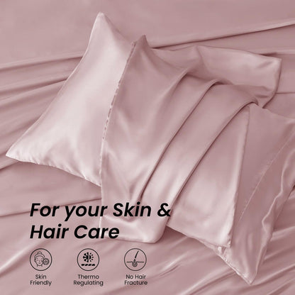 Introducing the Luxurious Silk Satin Bedsheet by Mush. This lavish bedsheet set includes a 108x108 inches king size flat sheet and two luxurious silk satin pillow covers, making it a perfect addition to your bedroom décor. Crafted from 100% Satin-Silk Polyester, this bedsheet offers a delightful indulgent feel, transforming your sleep experience beautifully.