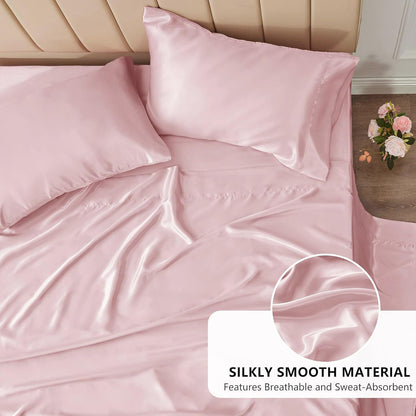 • EASY CARE: Enjoy wrinkle-resistant, machine washable satin bedsheets that maintain vibrant color and softness effortlessly.