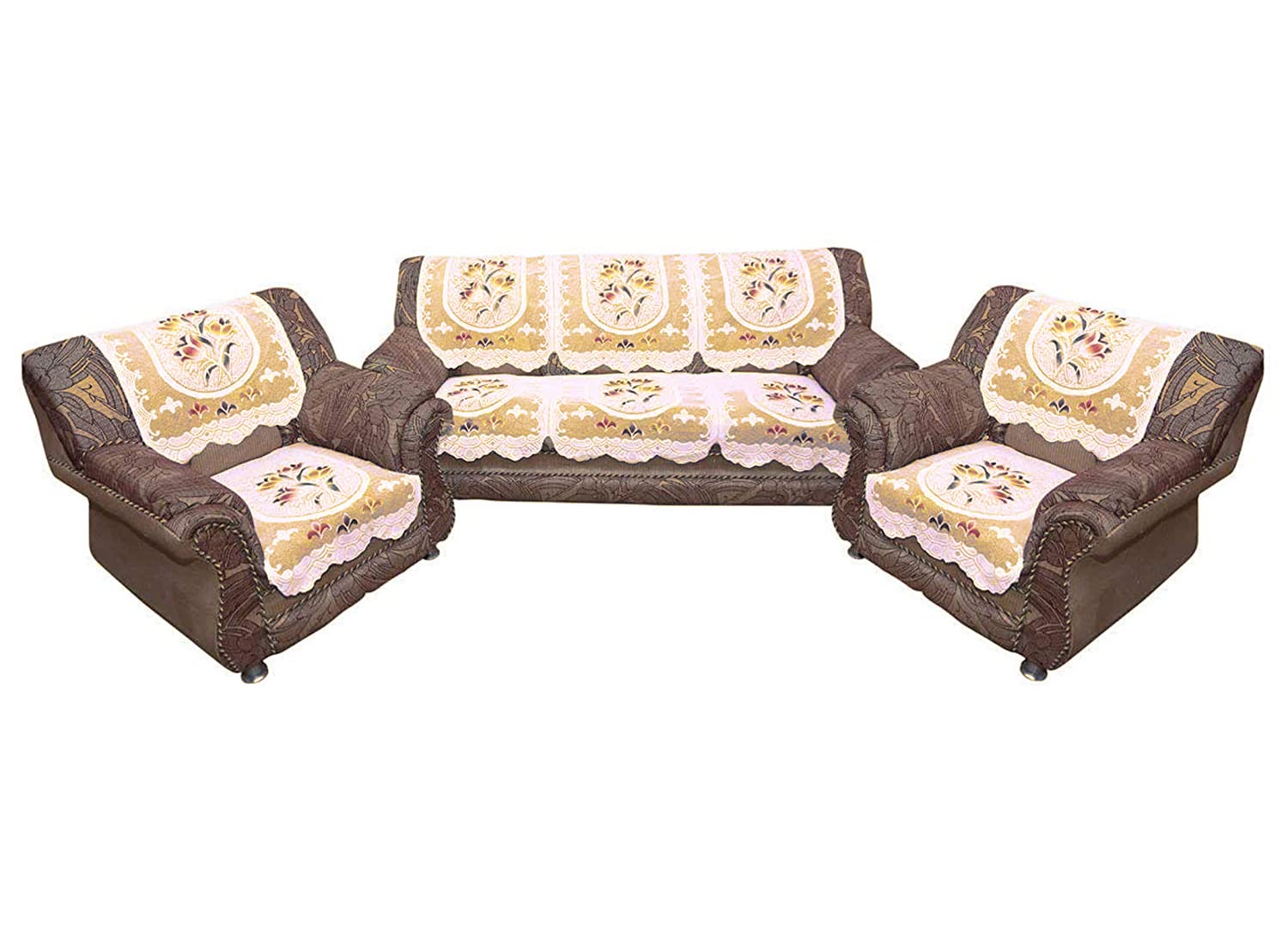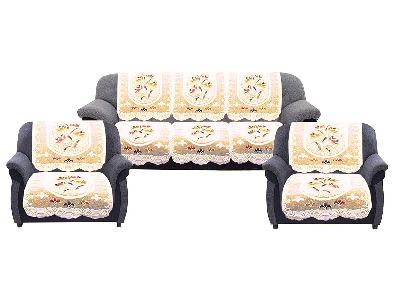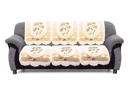 Flower Design Cotton 5 Seater Sofa Cover | Pack of 16 | Cream