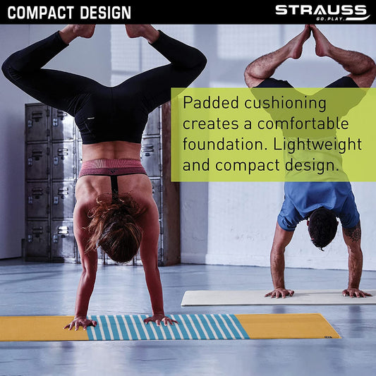 STRAUSS: Cotton Yoga Mat For Women and Men | Exercise mat for home workout, 100% Cotton, Anti Slip Fitness mat | Washable, Breathable, Sweat Absorbent & Eco-friendly material - 6mm (Yellow & Blue)