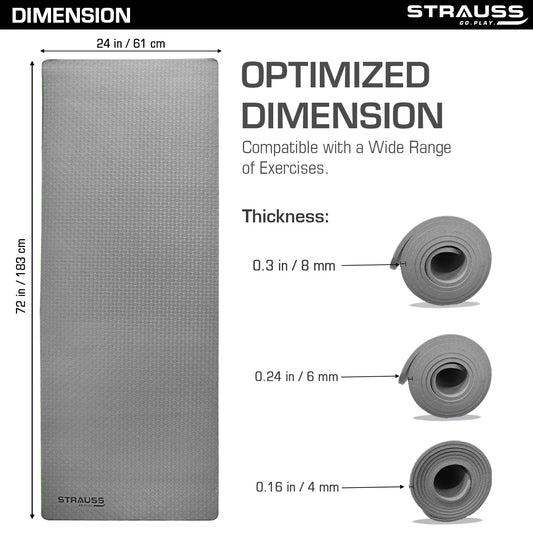STRAUSS TPE Dual Layer Yoga Mat| Exercise Mat for Yoga,Pilates & Gym| Lightweight & Eco-Friendly Material | Yoga Mat for Women and Men |Ideal for Home Gym Workout |Includes Carry Bag | 4MM,(Grey)