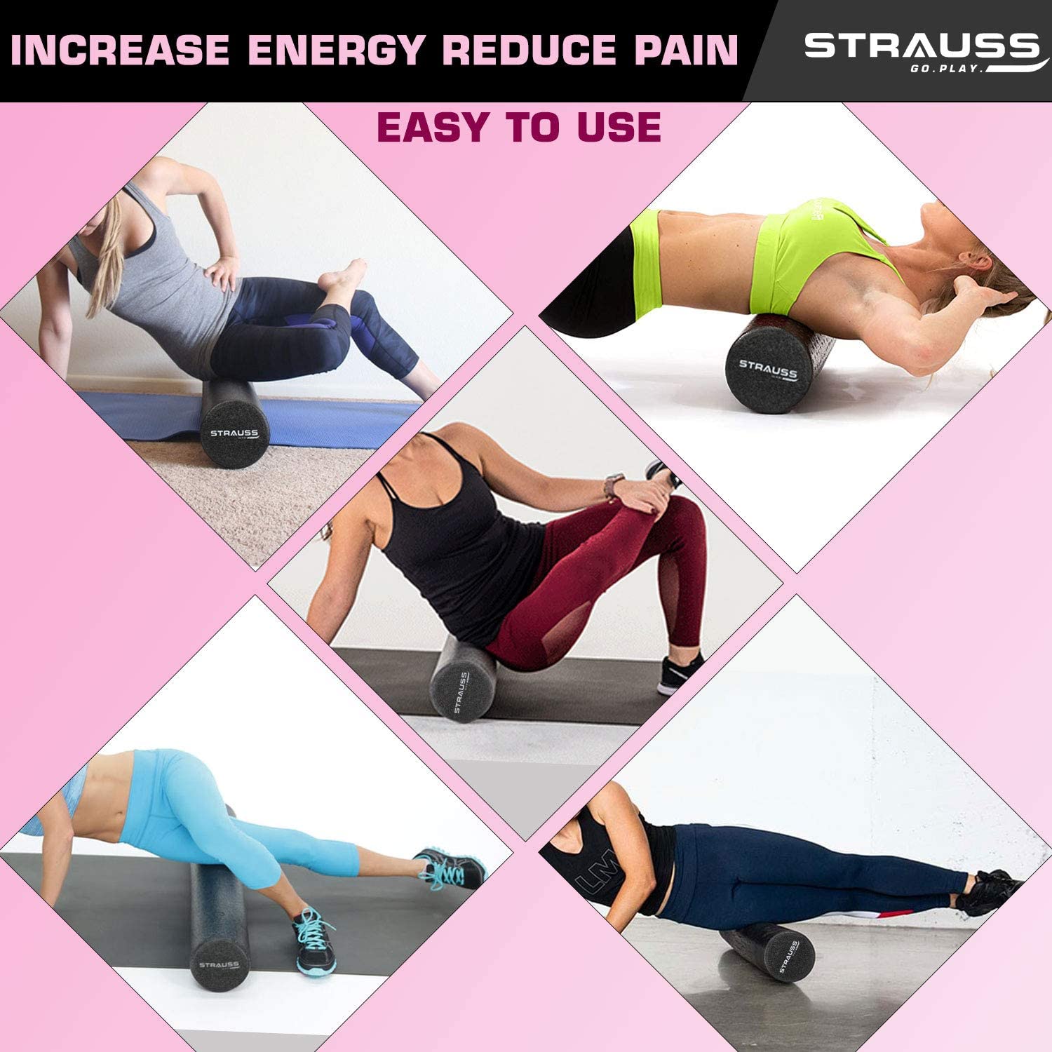 Strauss Grid Foam Roller | Eco-Friendly Spikes Foam Roller | Premium Eva Foam | Light Weight & Travel-Friendly Foam Roller for Relieve Muscle Tightness, Soreness & Inflammation, 45 cm (Black)