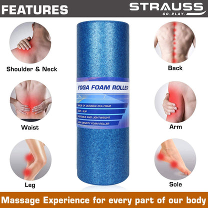 Strauss Yoga Foam Roller | Deep Tissue Massage Roller for Knee Exercise, Muscles Recovery & Physiotherapy | Home Gym Fitness Equipment for Full Body Relaxation and Flexibility | 30cm,(Sky Blue)