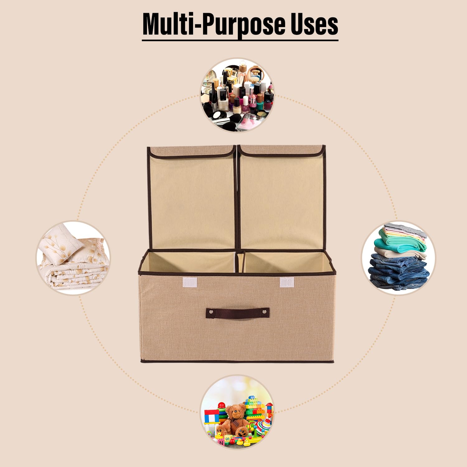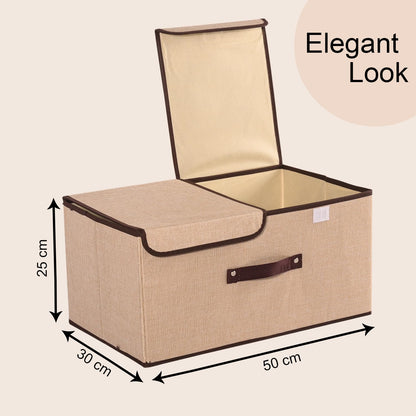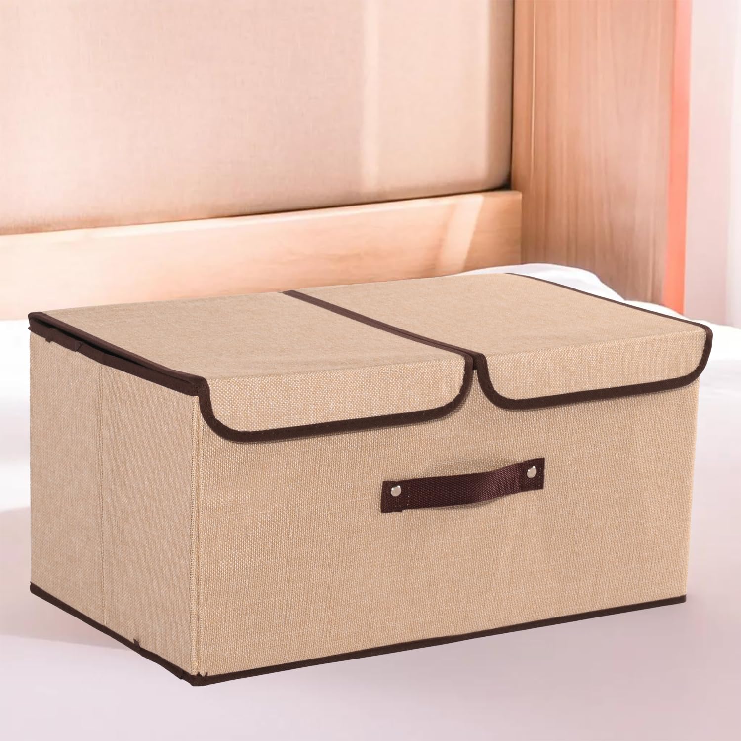 Pack of 5 Foldable Storage Box | Double Lid Storage Box with Handle | Stackable Storage Box For Clothes-Toys-Books | YJA008-BGE | Beige