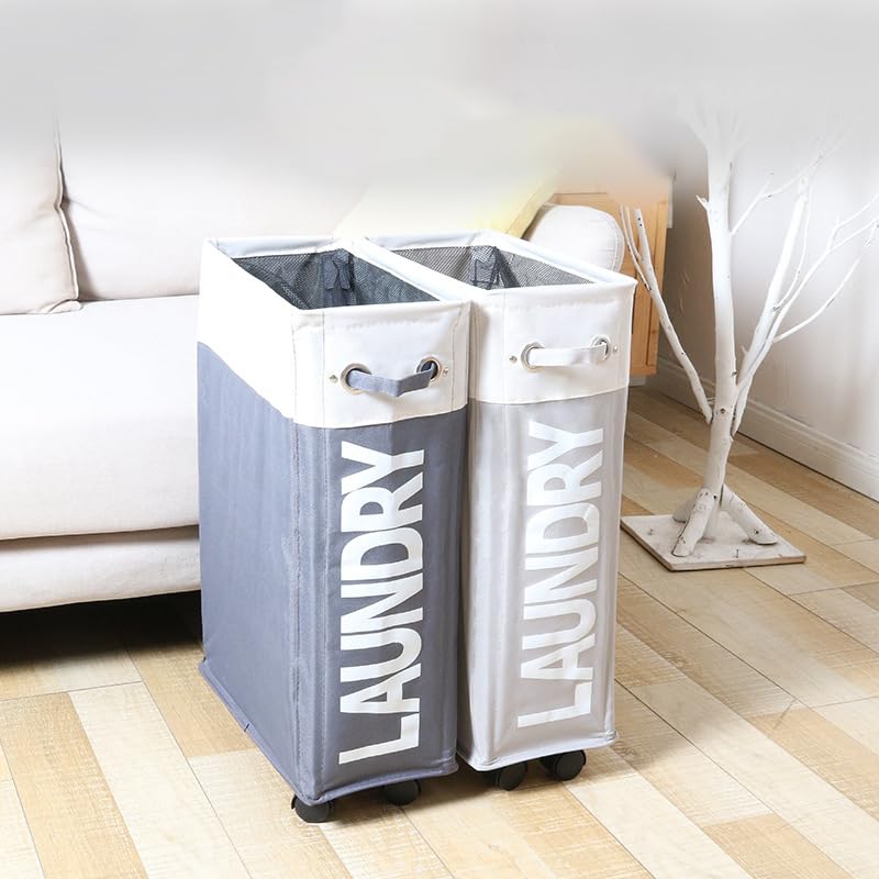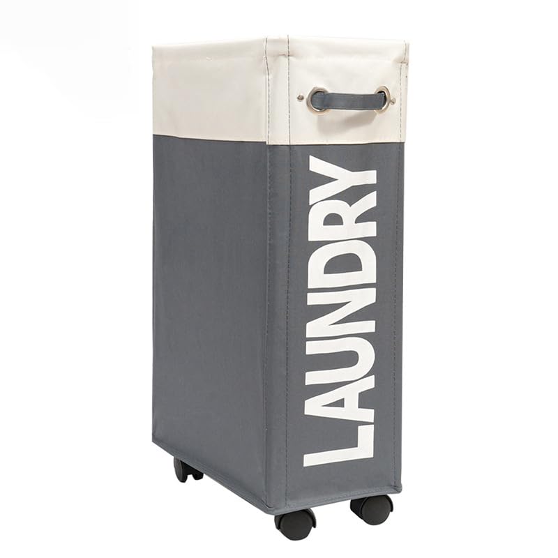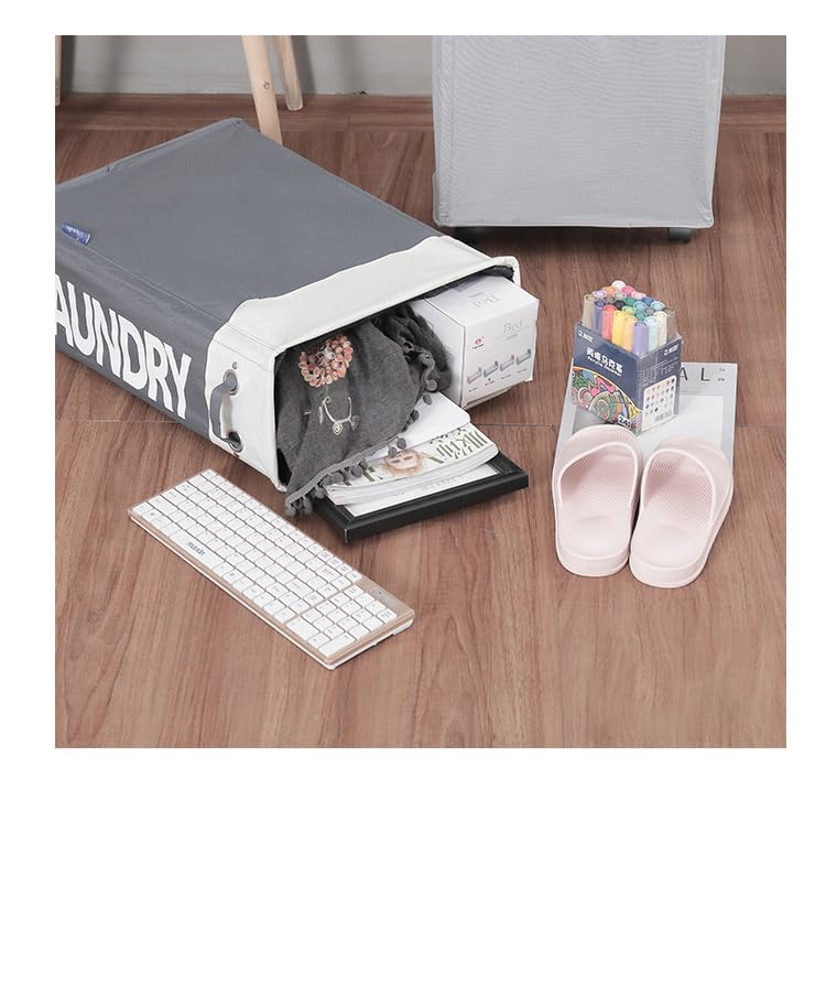 Heart Home Laundry Basket | Folding Laundry Basket with Stand | Wheels Laundry Basket | Waterproof Laundry Hamper with Handle | Storage Bins for Toys-Dirty Clothes | CL004WG | White-Dark Gray