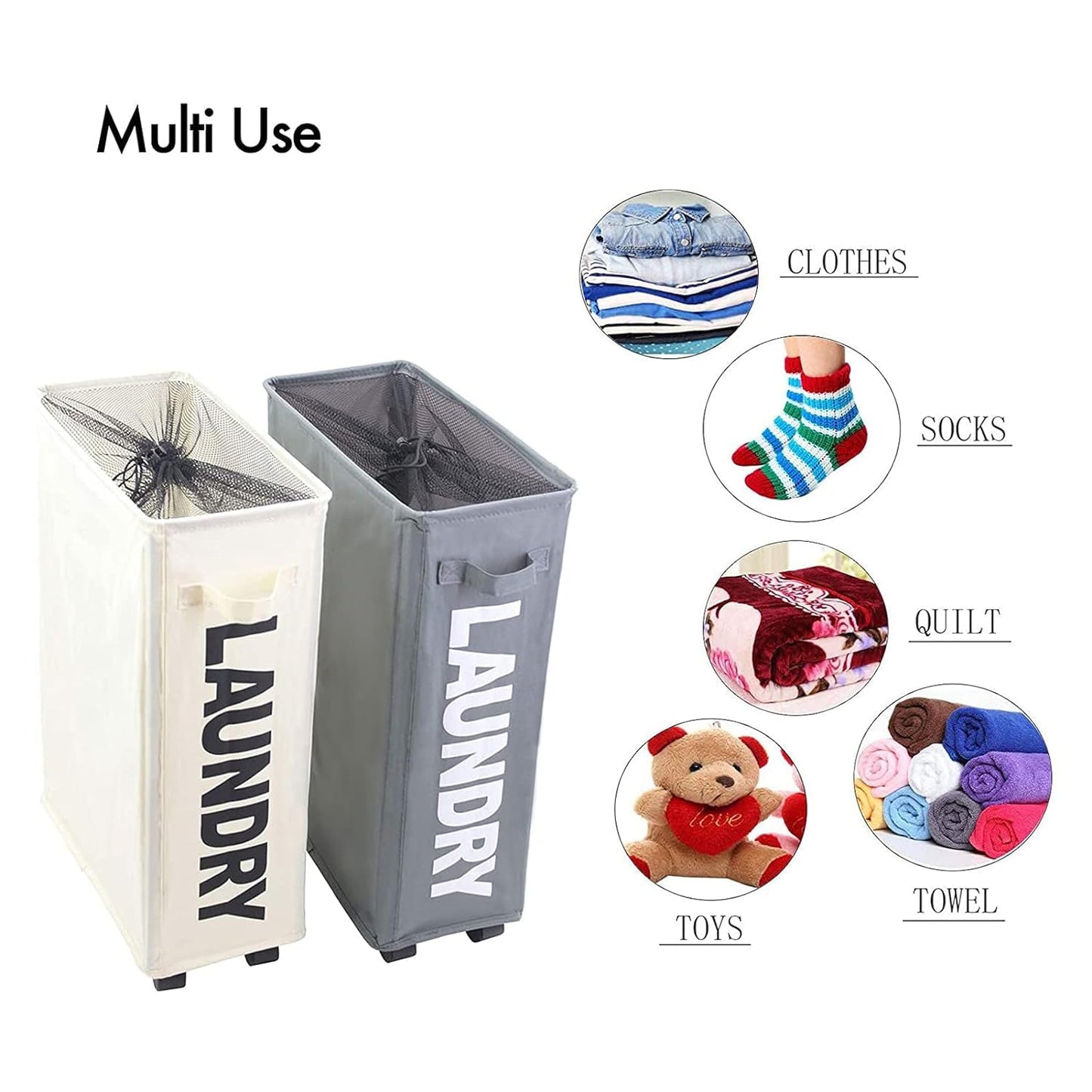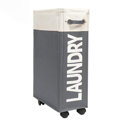 Introducing the Folding Laundry Basket with Stand & Wheels by Kuber International, your versatile solution for laundry storage and transport. With a spacious capacity and made from durable Cotton and Polyester, this laundry basket measures 60 x 40 x 20 cm and features a sleek White-Dark Gray design. It not only looks great but is also equipped to handle all your laundry needs, making it ideal for small spaces such as laundry rooms, bathrooms, or closets.