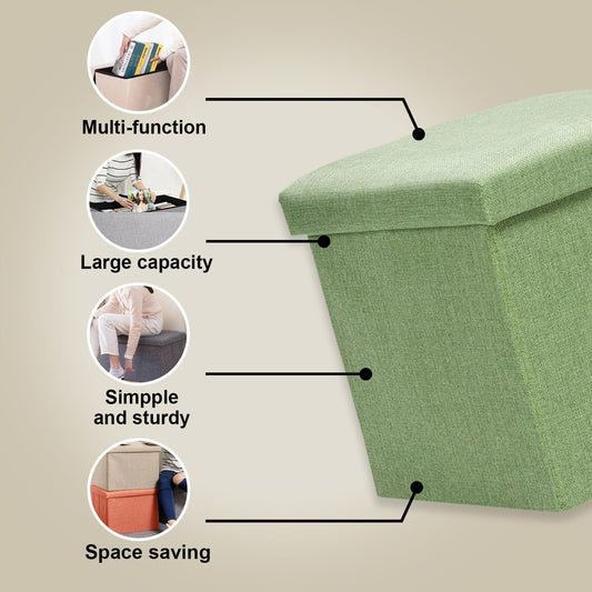 Kuber Industries Storage Stool | Square Toy Storage Box | Foot Rest Stool | Folding Seating Stool | Wardrobe Organizer for Clothes-Books | Storage Box for Living Room | S ZH004GN | Green