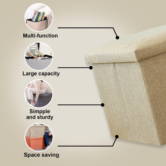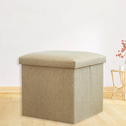Kuber Industries Storage Stool | Square Toy Storage Box | Foot Rest Stool | Folding Seating Stool | Wardrobe Organizer for Clothes-Books | Storage Box for Living Room | S ZH003BG | Beige