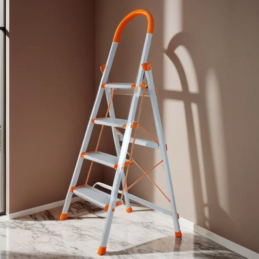 Cheston Foldable GI Steel 4-Steps Home Ladder | 4.8 Feet Anti-Skid Step Ladder with Wide Pedal & Hand Grip | Shock-Resistant Foldable Ladder for Home Use | Supports 150+ Kgs | Orange 4 Step