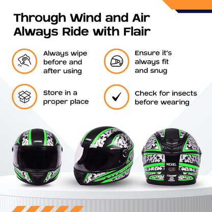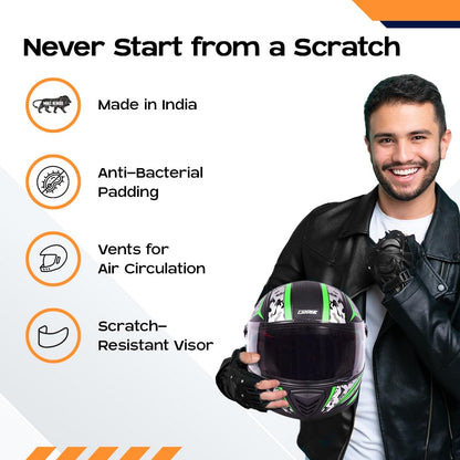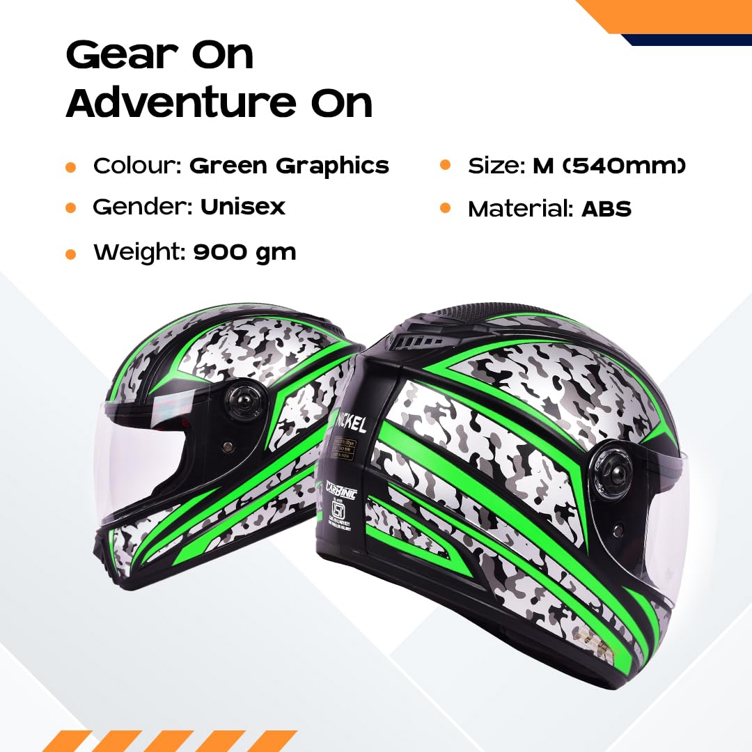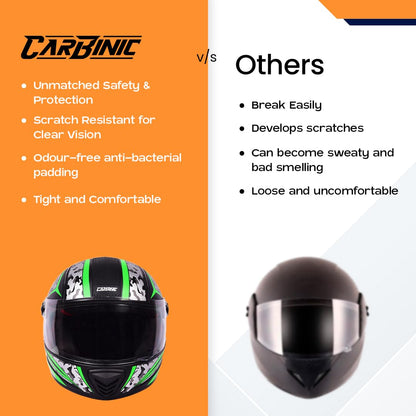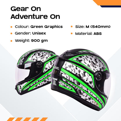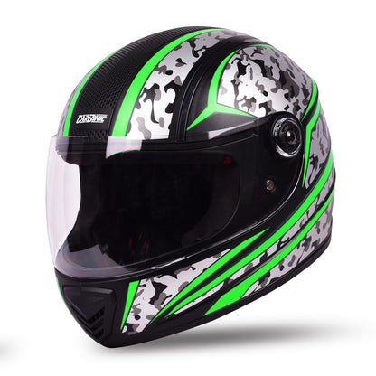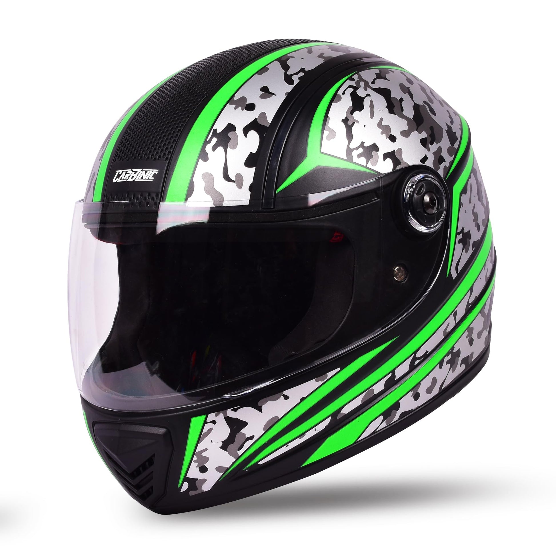 CARBINIC Nickel Series Full Face Helmet for Men & Women | ISI Certified | Clear & Scratch Resistant Visor | Lightweight & Stylish | Medium | Green Graphic