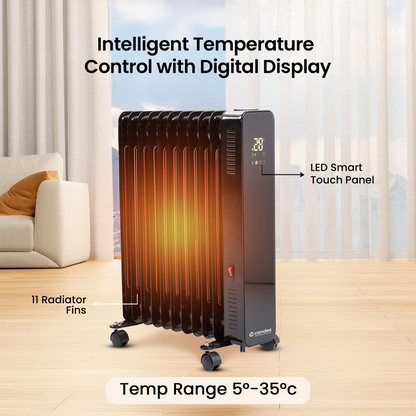 Fumato Oil Heater: Remote Controlled Black Electric Heater | 2200W | 11-Fins Design