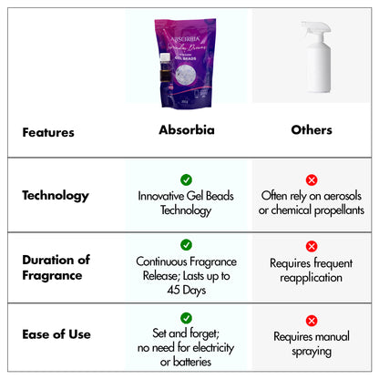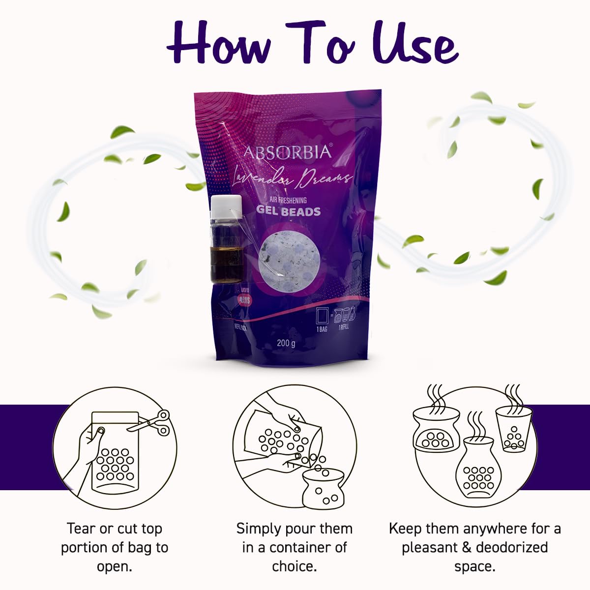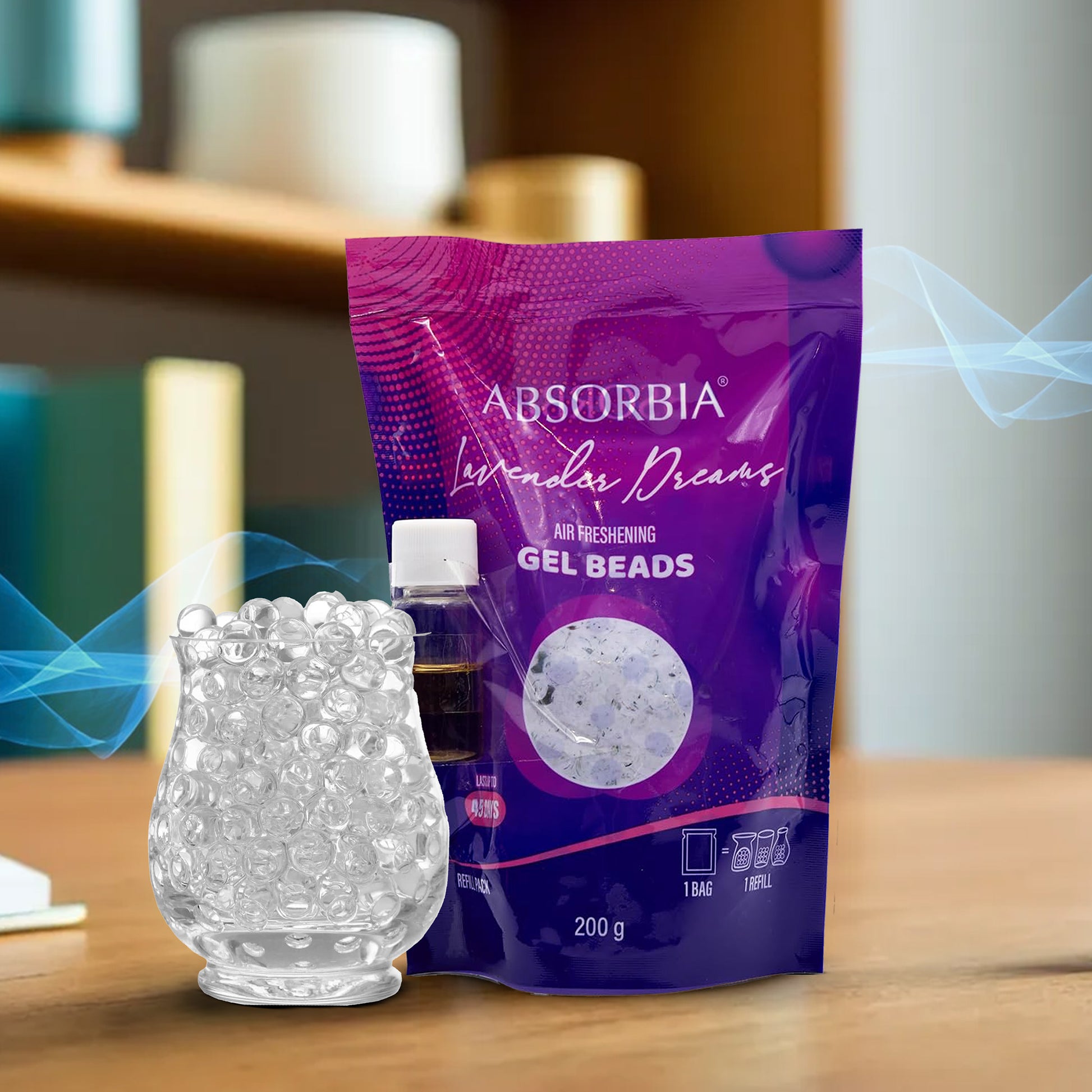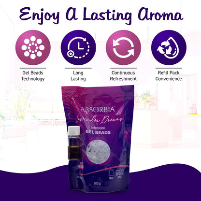 Whether you're a homeowner seeking a pleasant atmosphere or in need of a delightful gift, the Absorbia Gel Beads Air Freshener meets your needs. Elevate your surroundings with this refreshing lavender scent that combines quality, functionality, and aesthetic appeal. Transform your spaces today with Absorbia, where freshness is just a refill away!