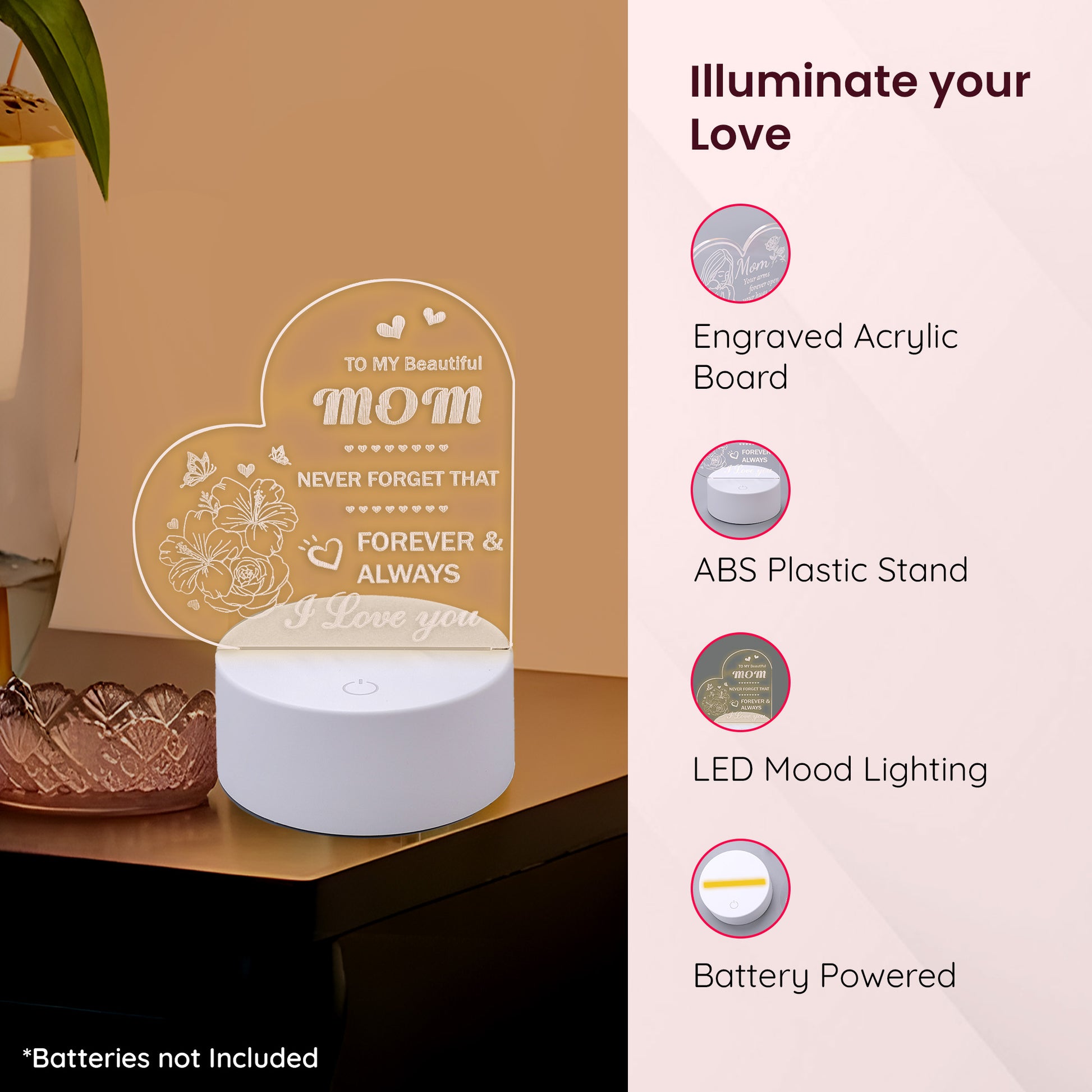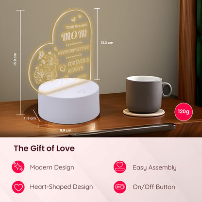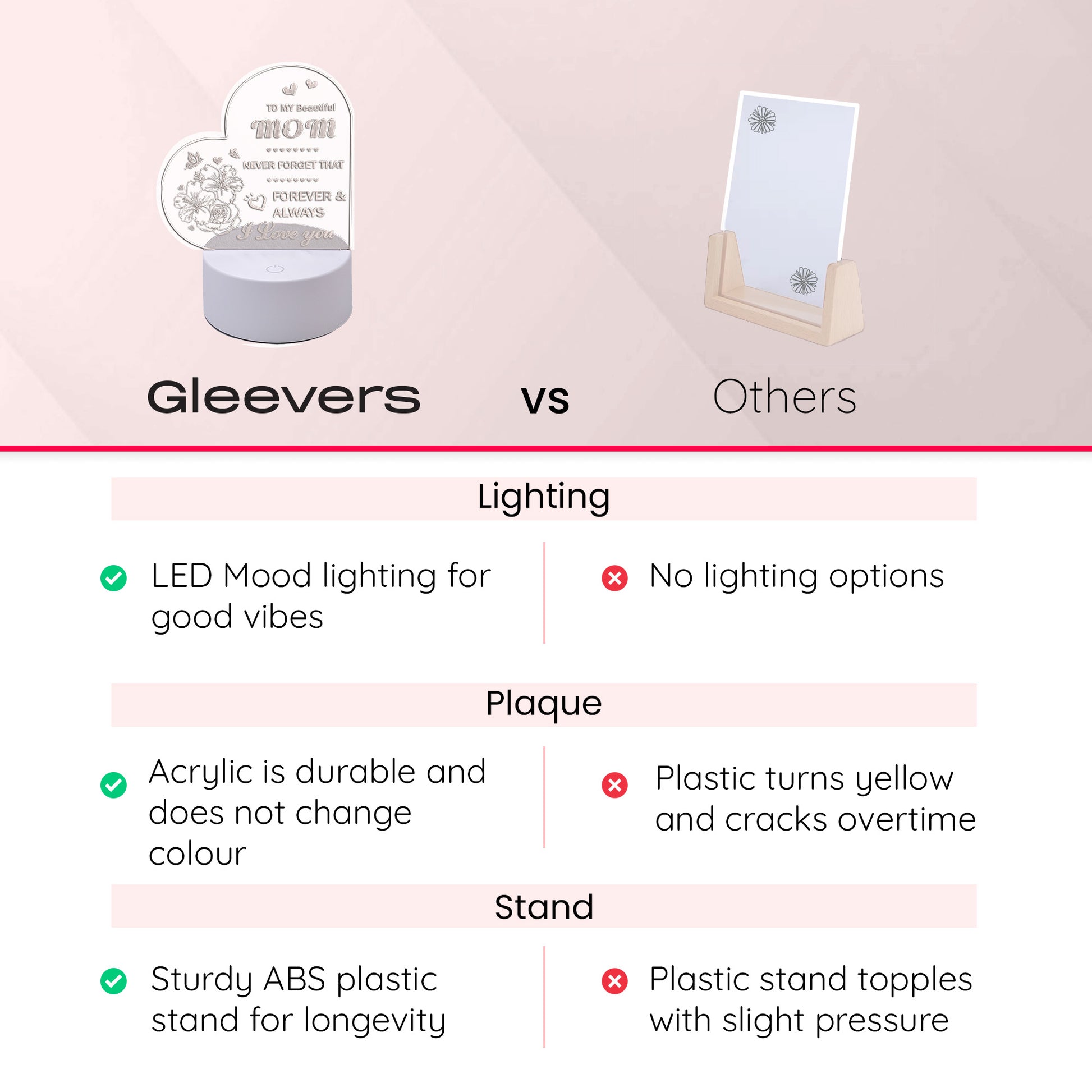 Gleevers Acrylic Plaque with Stand LED Light | Gift For Mother Grandmother | Heart-shaped Engraved Night Light | Mothers Day gift for mom | 1 Pack