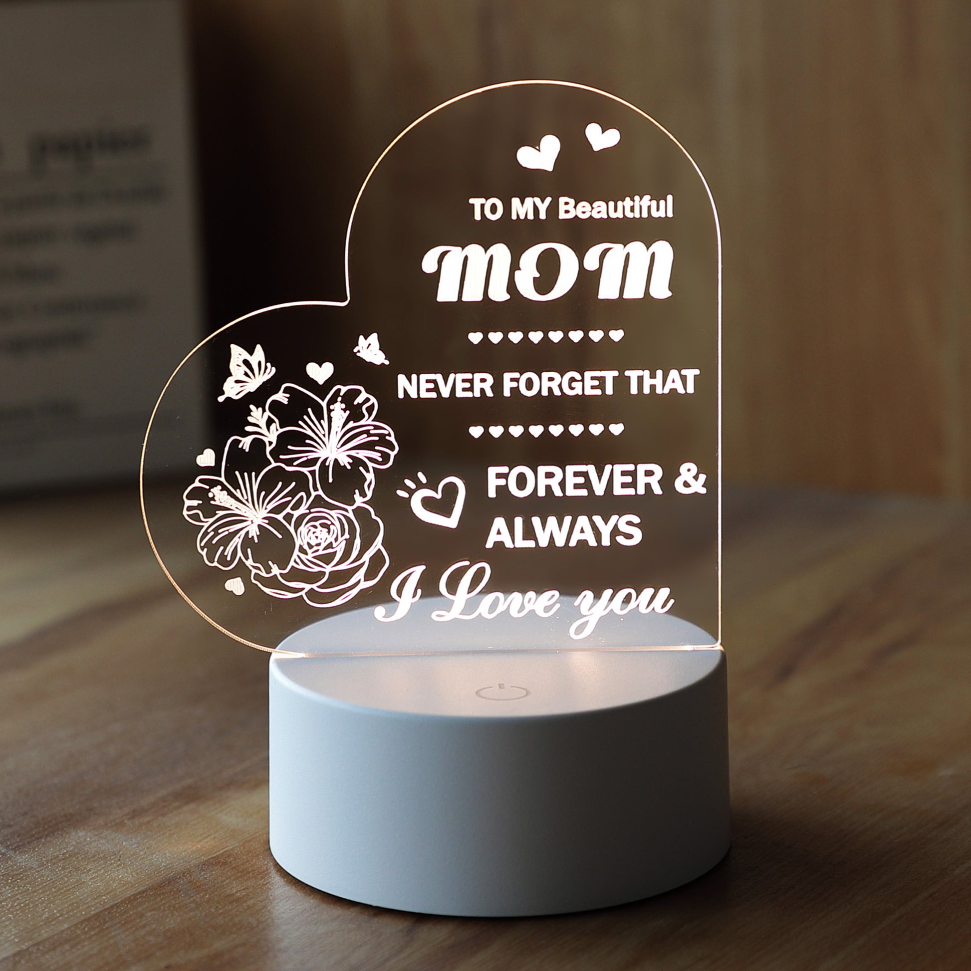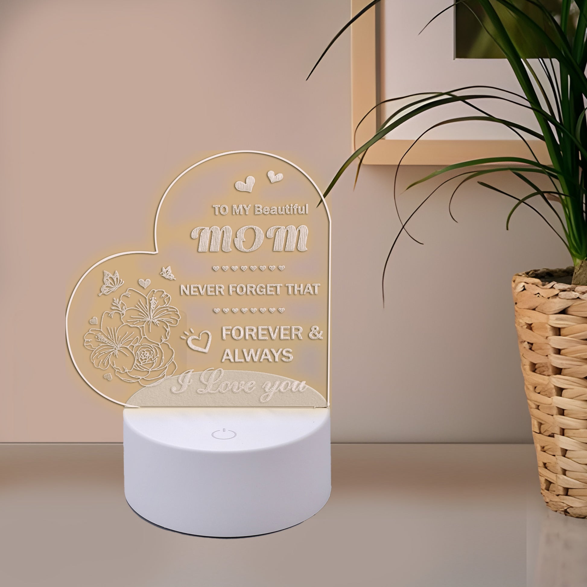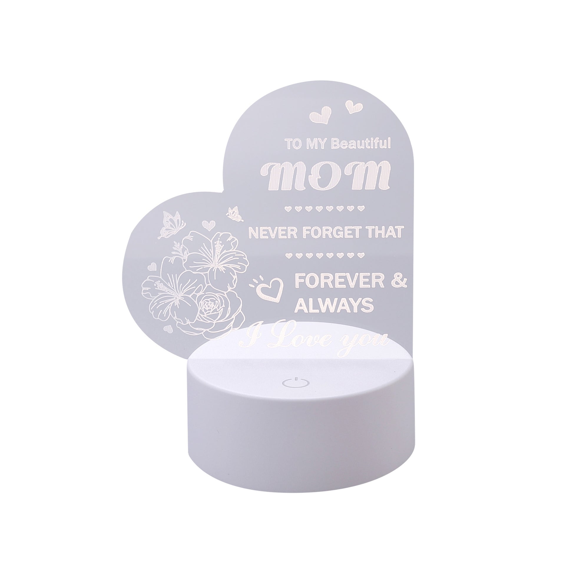 Acrylic Plaque with Stand LED Light | Gift For Mother Grandmother | Heart-shaped Engraved Night Light | Mothers Day gift for mom | 1 Pack
