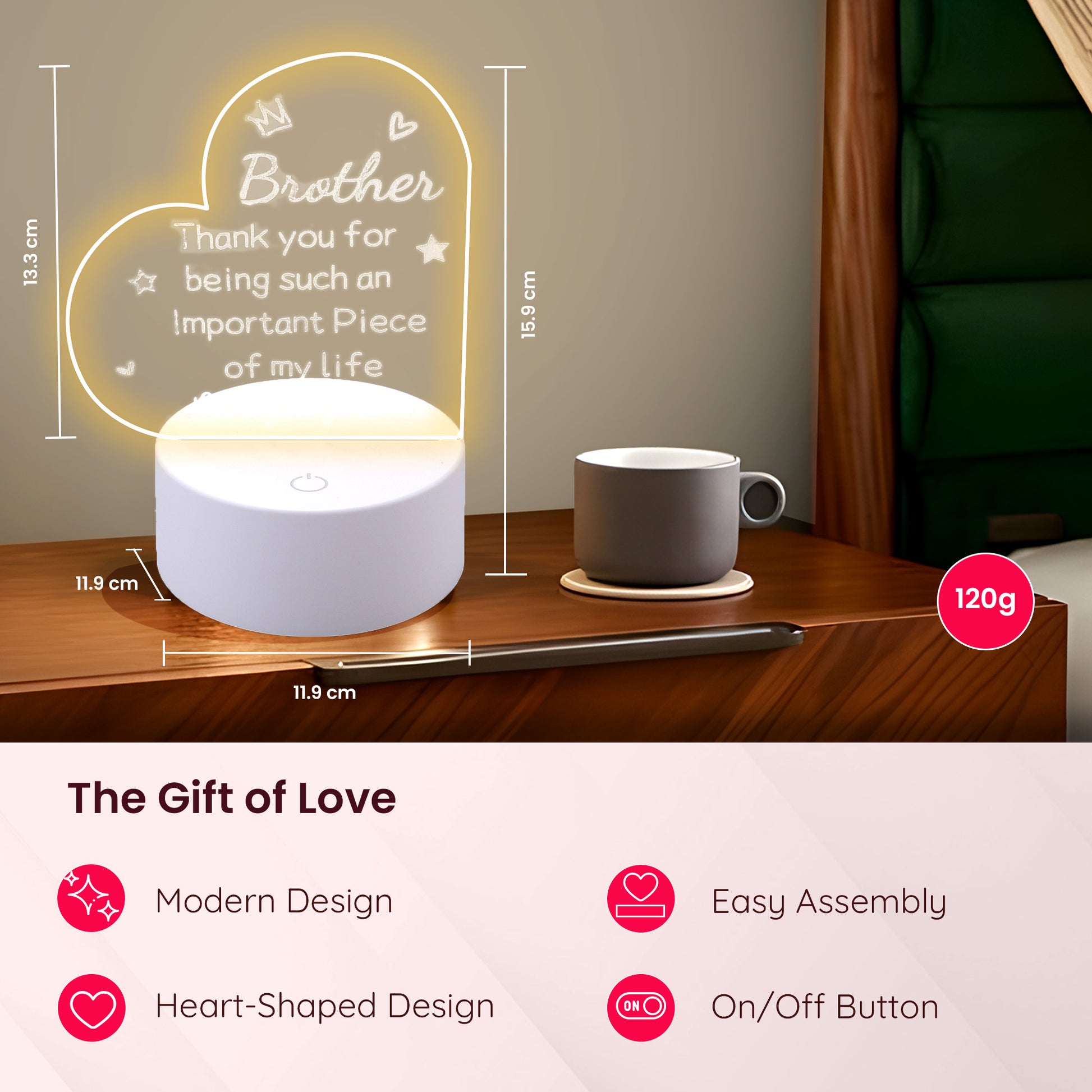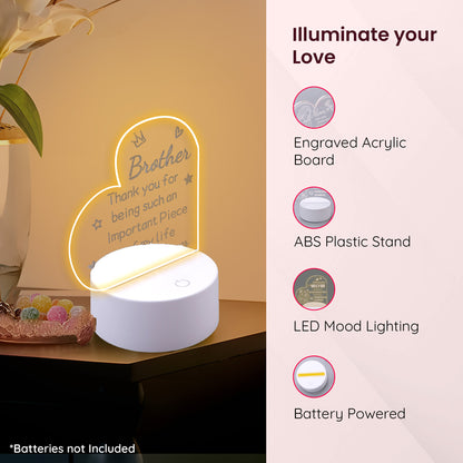 Introducing the Gleevers Acrylic Plaque with Stand LED Light Heart Shaped, your ideal gift for celebrating life's special occasions. This stunning plaque measures 15.9 cm in height and 11.9 cm in length and is crafted from durable plastic, ensuring a long-lasting keepsake. Featuring an enchanting LED light that enhances its heart-shaped design, this is the perfect gift for your brother’s birthday, Christmas, or any other memorable event.