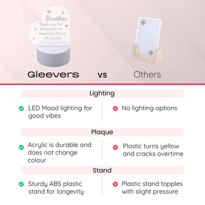 Whether celebrating a birthday, special occasion, or simply expressing love, the Gleevers Acrylic Plaque invokes warmth and affection. Gift this beautiful plaque to your brother or a loved one, and make their day extra special with a personal touch.