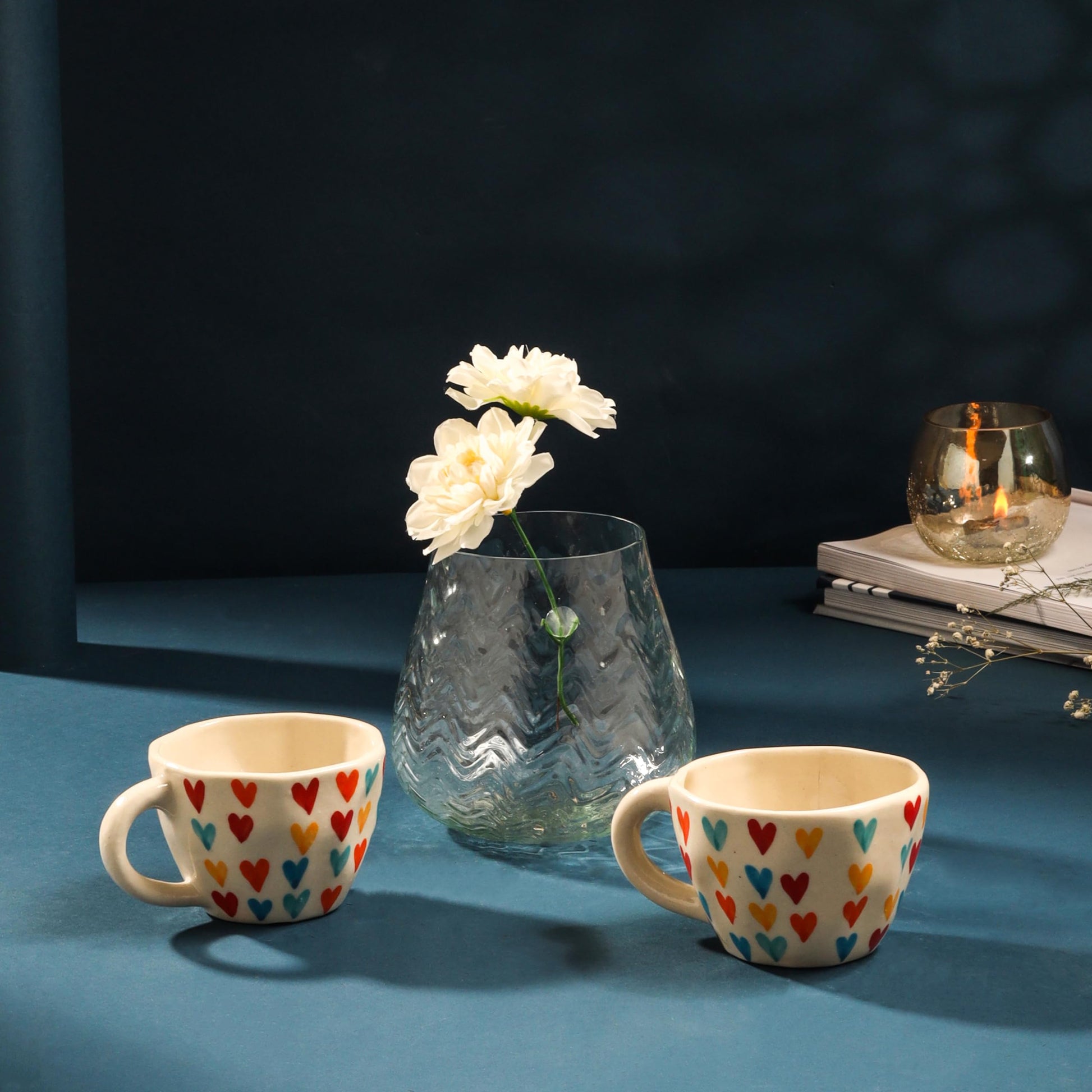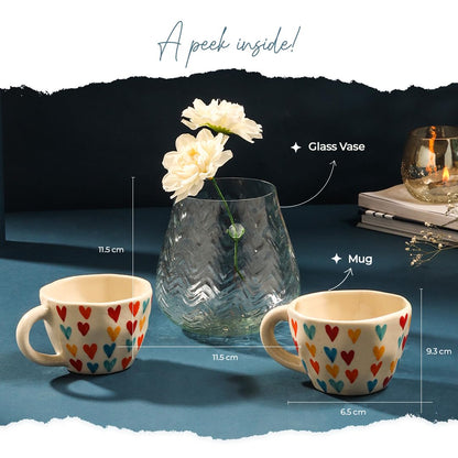 • Versatile Use: The glass vase is perfect for fresh flowers or decorative plants, while the mugs are ideal for sharing warm beverages.