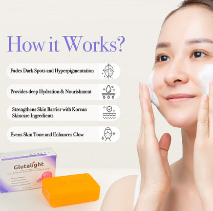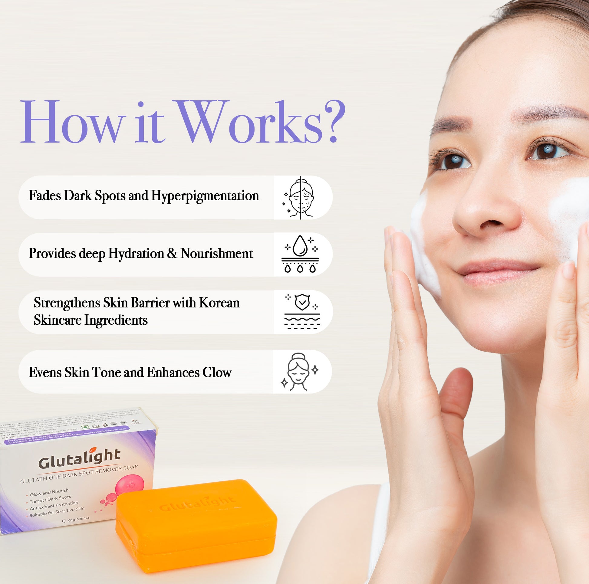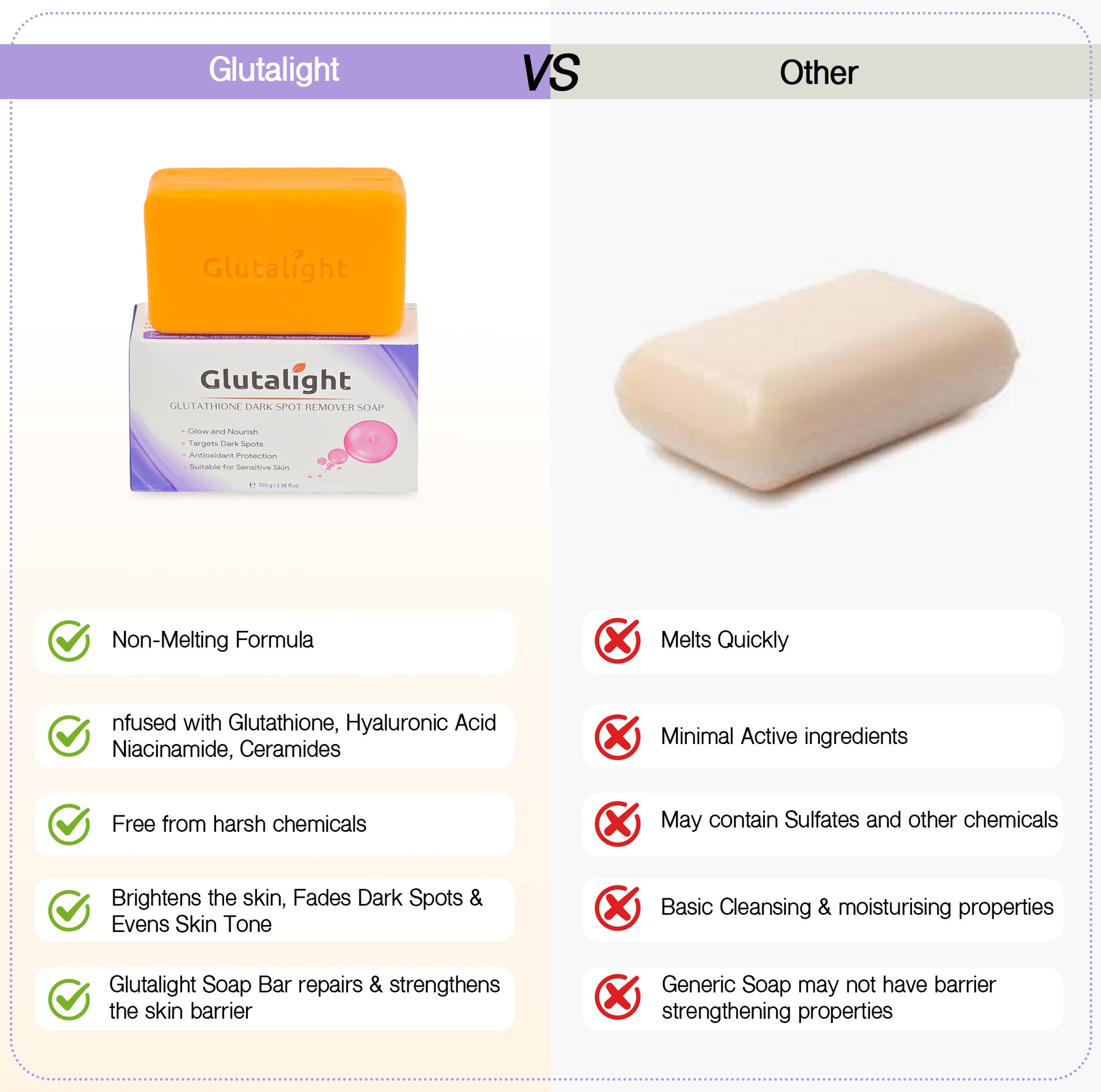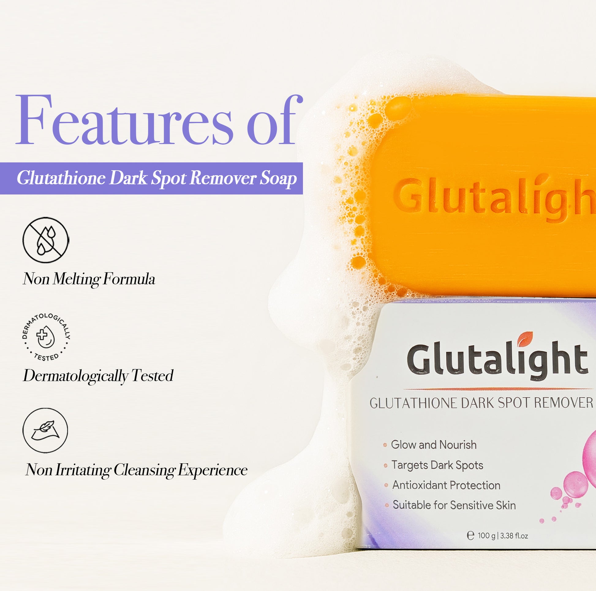 Glutalight Glutathione Dark Spot Remover Soap | Deep Nourishment for Radiant Skin | Even Skin Tone & Fades Hyperpigmentation | Hydrating Formula with Hyaluronic Acid, Vitamin E & Ceramides | Pack of 1