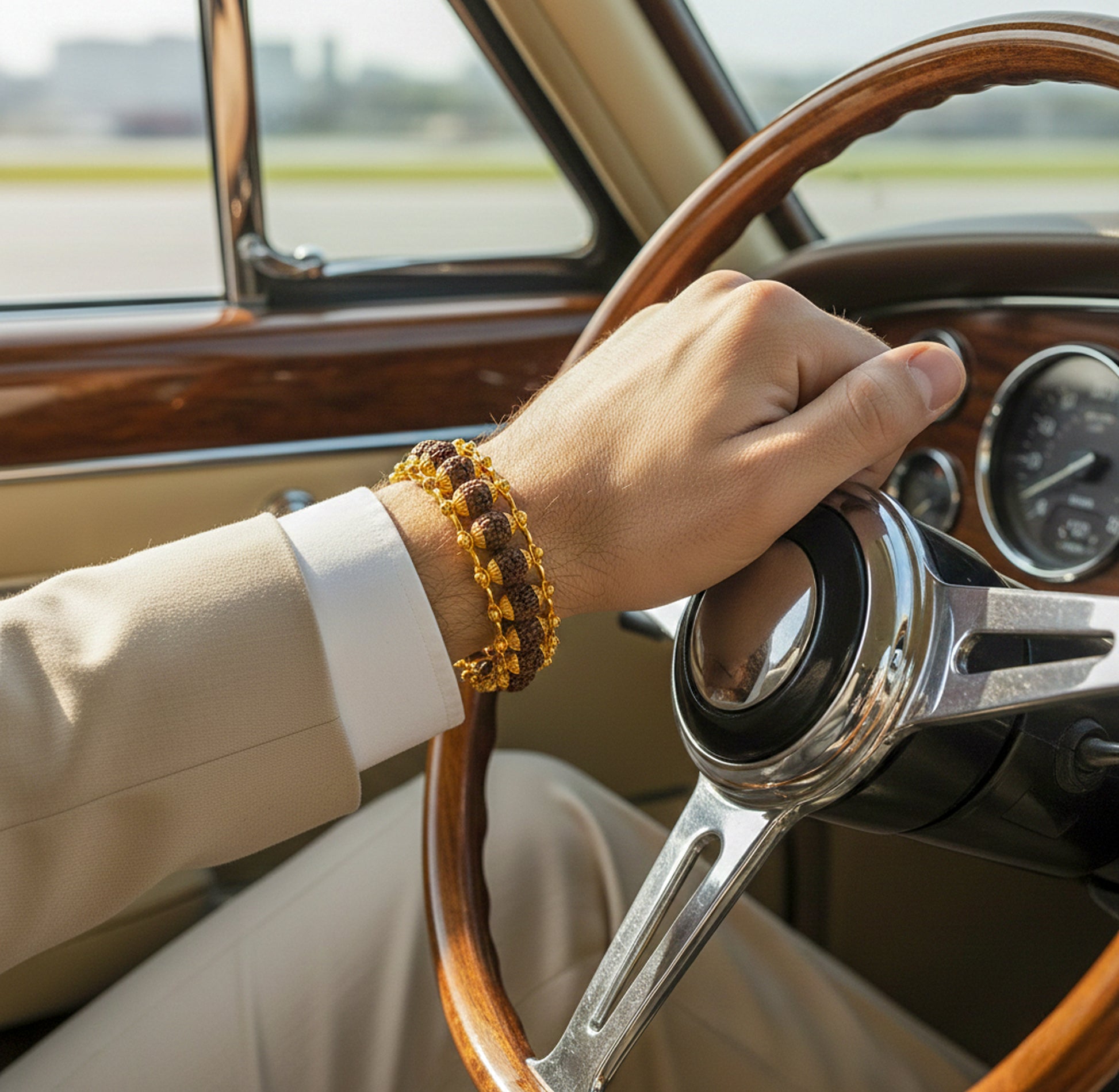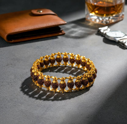 Gold Plated Rudraksha Bracelet for Men | Stylish Hand Accessory