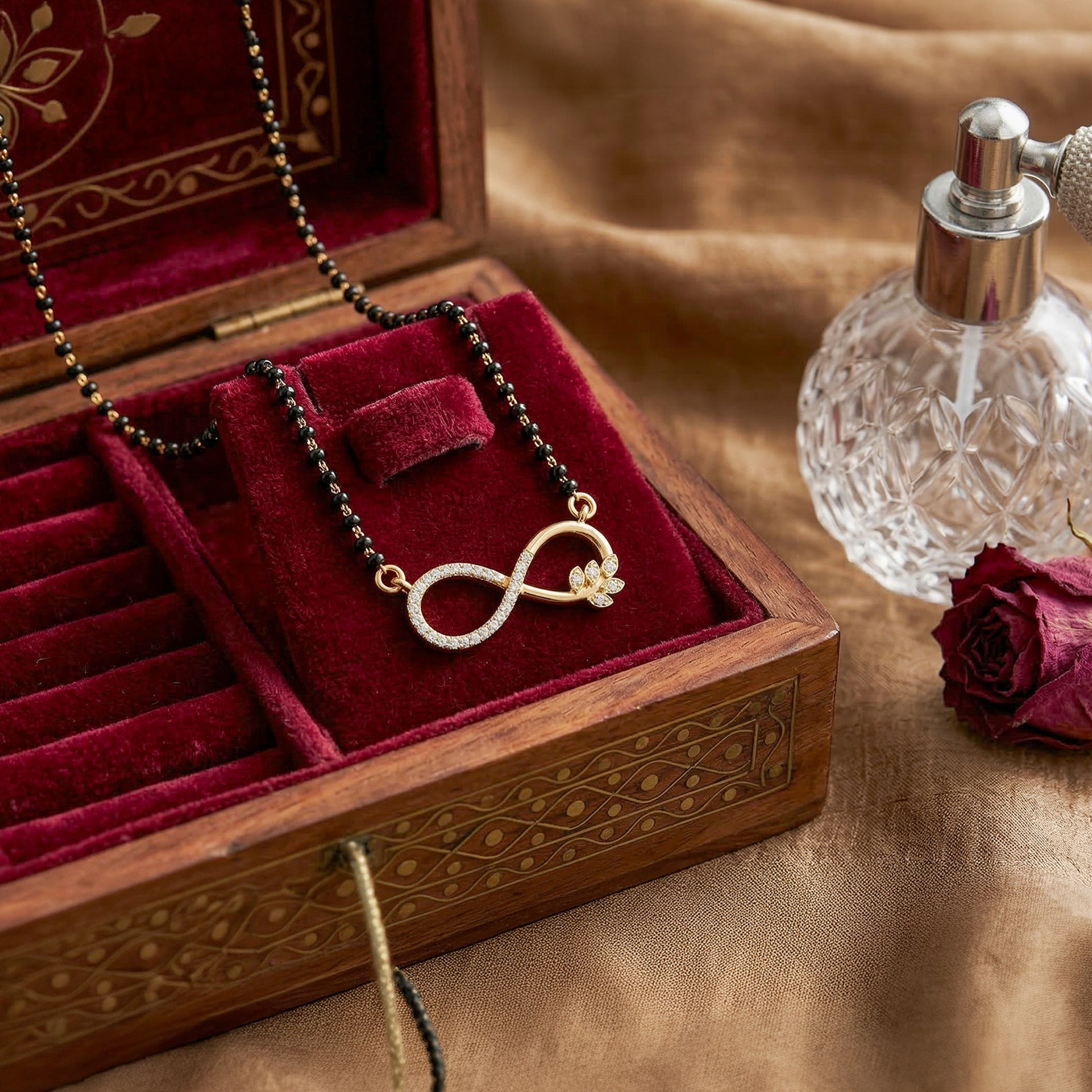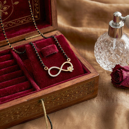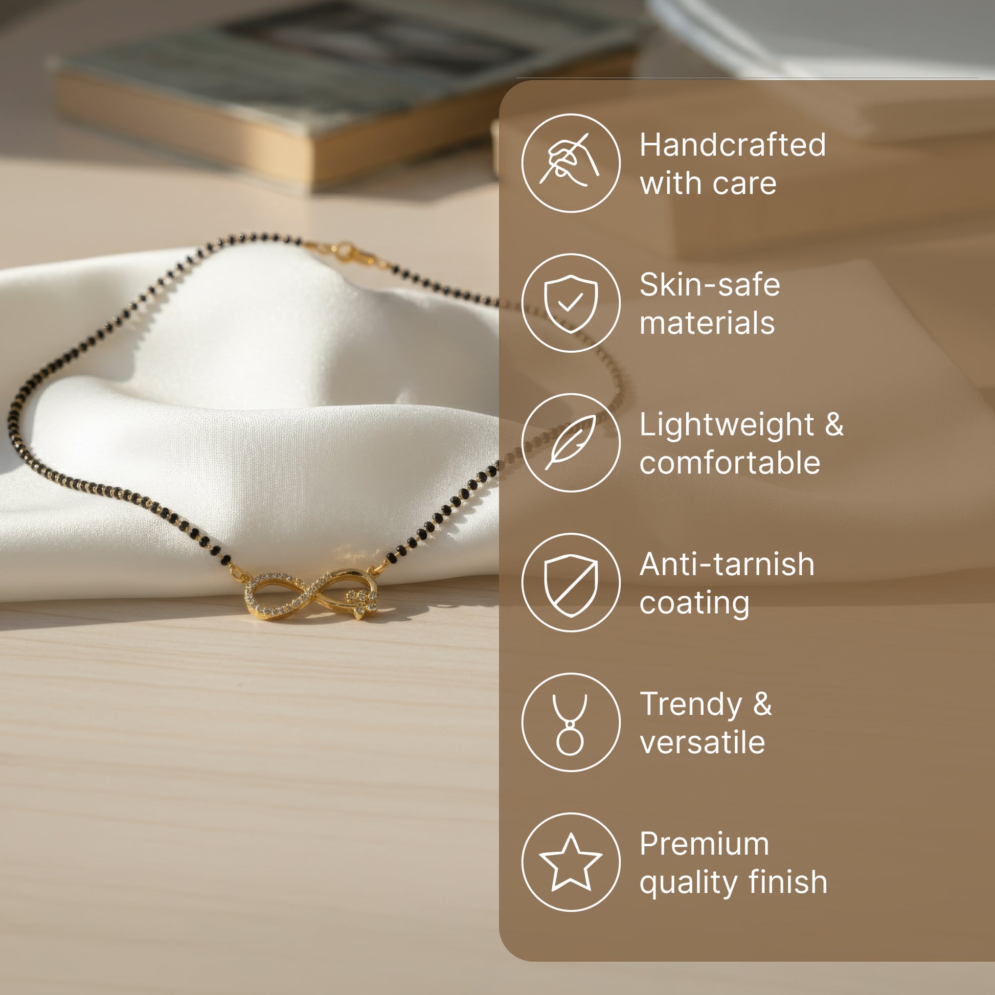 Gold Plated Stylish Mangalsutra: Infinity Pendant Design | Traditional Black Beads | Women's Jewelry