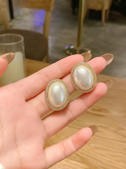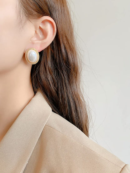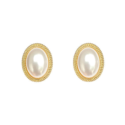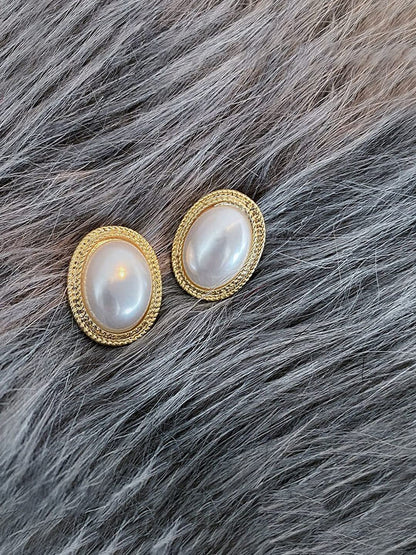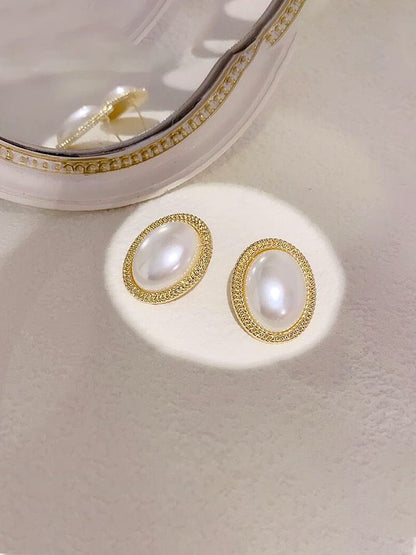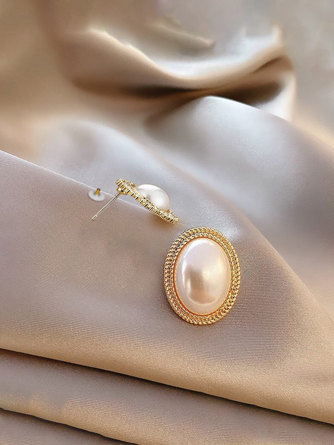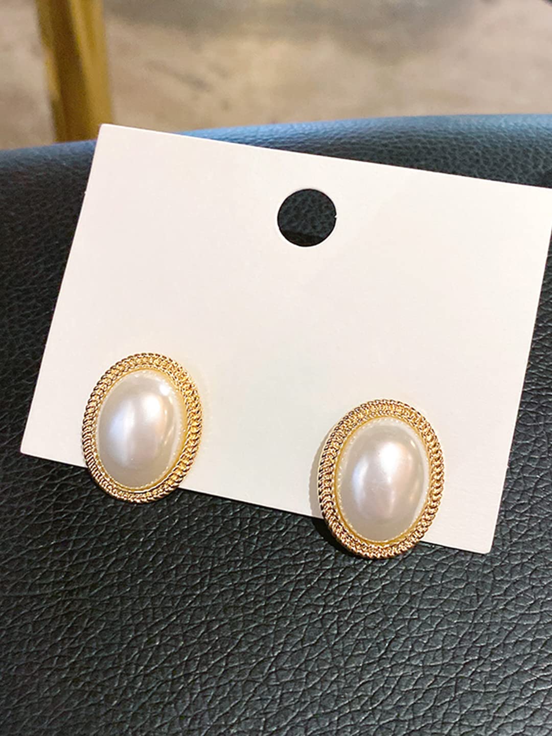 Earrings For Women Gold Toned Elegant Oval Shape Pearl Stud Earrings For Women and Girls