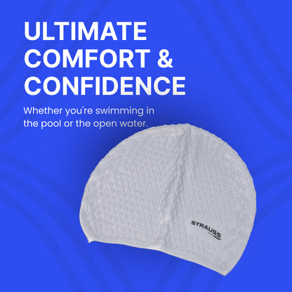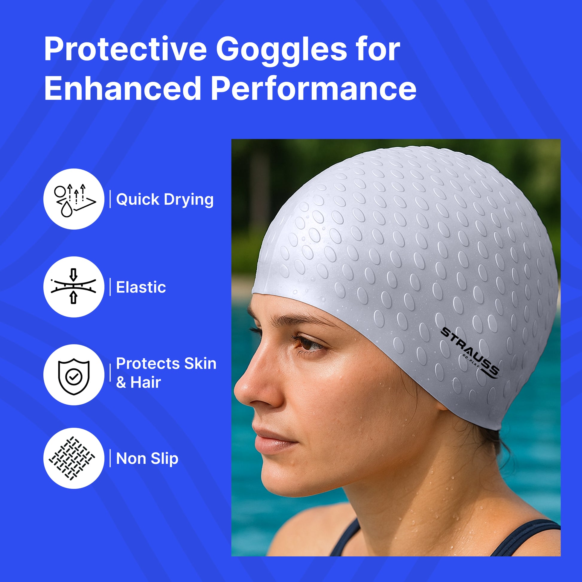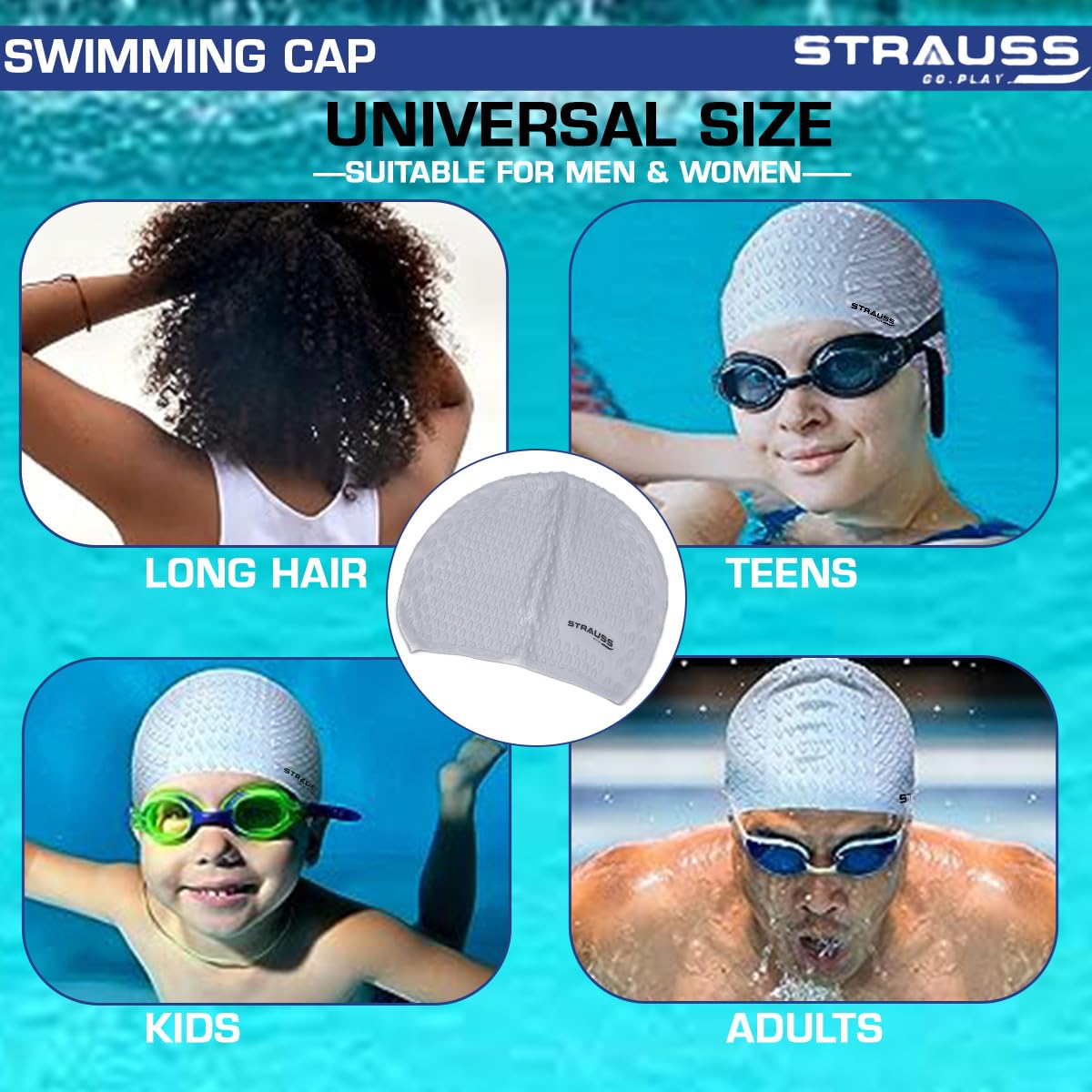 Strauss Latest Designed Swimming Cap|Keeps Hair Clean with Ear Protector|Suitable for Long and Short Hair|Swimming Head Cap with Breathable Fabric|Waterproof Swim Cap for Adult, Woman and Men,(Grey)