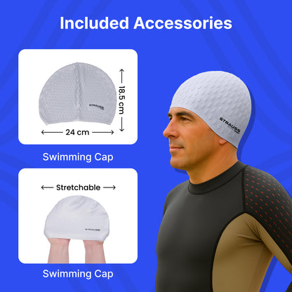 Introducing the Strauss Latest Designed Swimming Cap, your ultimate companion for aquatic adventures. Crafted from premium breathable fabric, this swim cap is designed not only for styling but also to ensure that your hair remains clean and dry during your swims. With a secure fit ideal for both long and short hair, it provides protection while delivering supreme comfort.