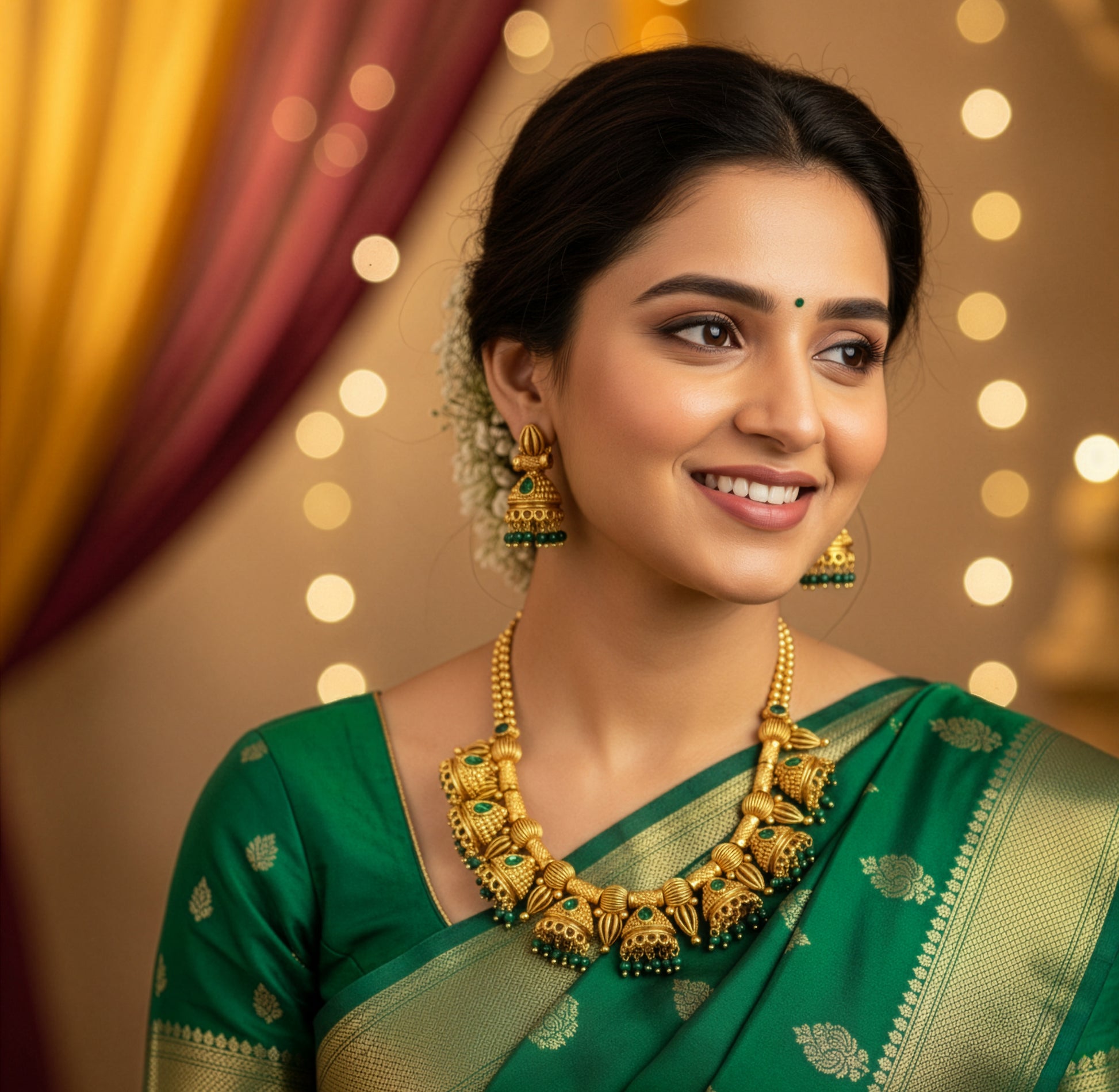 - TRADITIONAL TEMPLE STYLE: Inspired by South Indian temple jewellery designs that add cultural richness and heritage appeal.