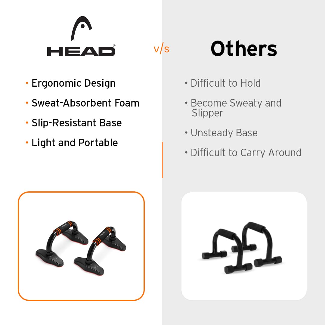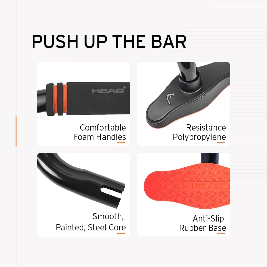 HEAD Push Up Bar for Home Workout | Pushup Stands with Comfortable Foam Grip and Non-Slip Steel Bars | Exercise Equipment for Home | Abs Workout Equipment for Men & Women | Fitness Equipment - Black