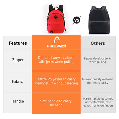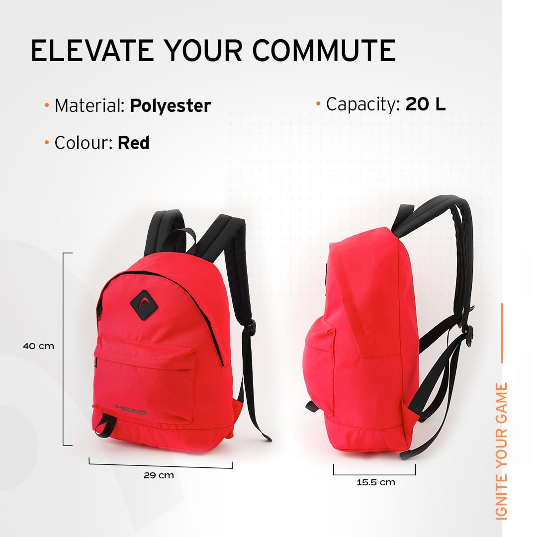HEAD Vibe Travel Backpack for Men & Women - 20 L | 100% Polyester | Water Resistant | Laptop Bag for Men | College Bag for Men | School Bag for Girls | Office Bag for Men | Casual Trendy Bag - Red