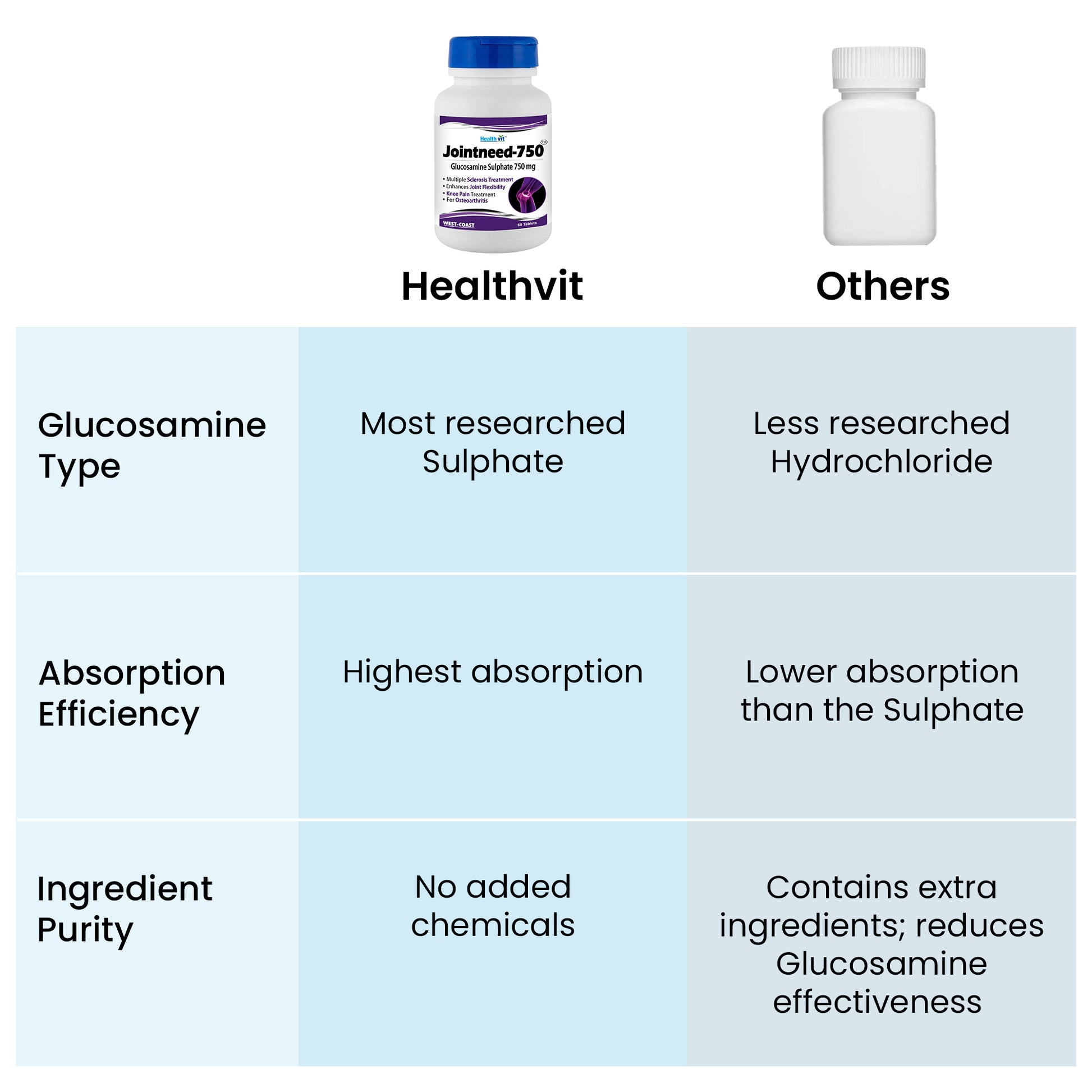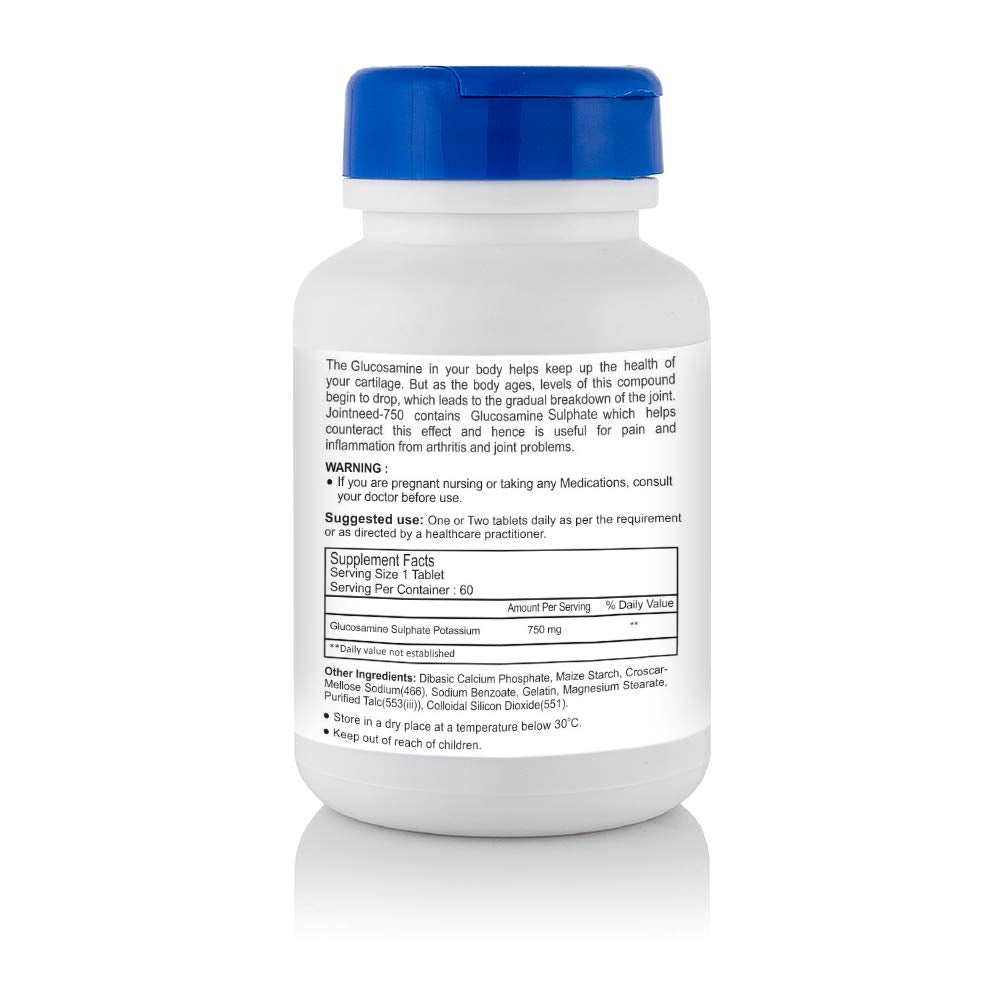 Healthvit Jointneed-750 : Glucosamine Sulphate 750mg | Osteoarthritis | Joint Support | Mobility and Flexibility | Muscles | Ligaments Damage -60 Tablets