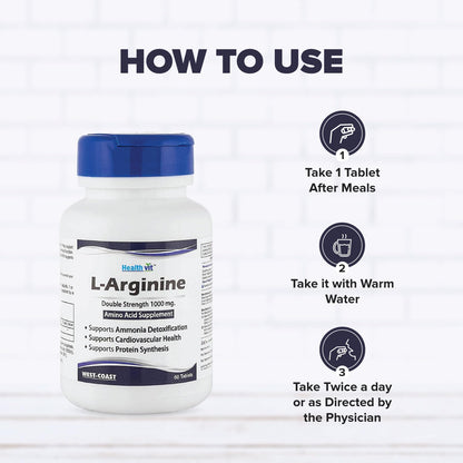 Healthvit L-Arginine 1000mg - Amino Acid Supplement |Nitric Oxide Booster Supplement for Muscle Growth | Support Heart Health | Improve Endurance | 60 Tablets