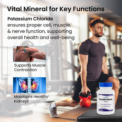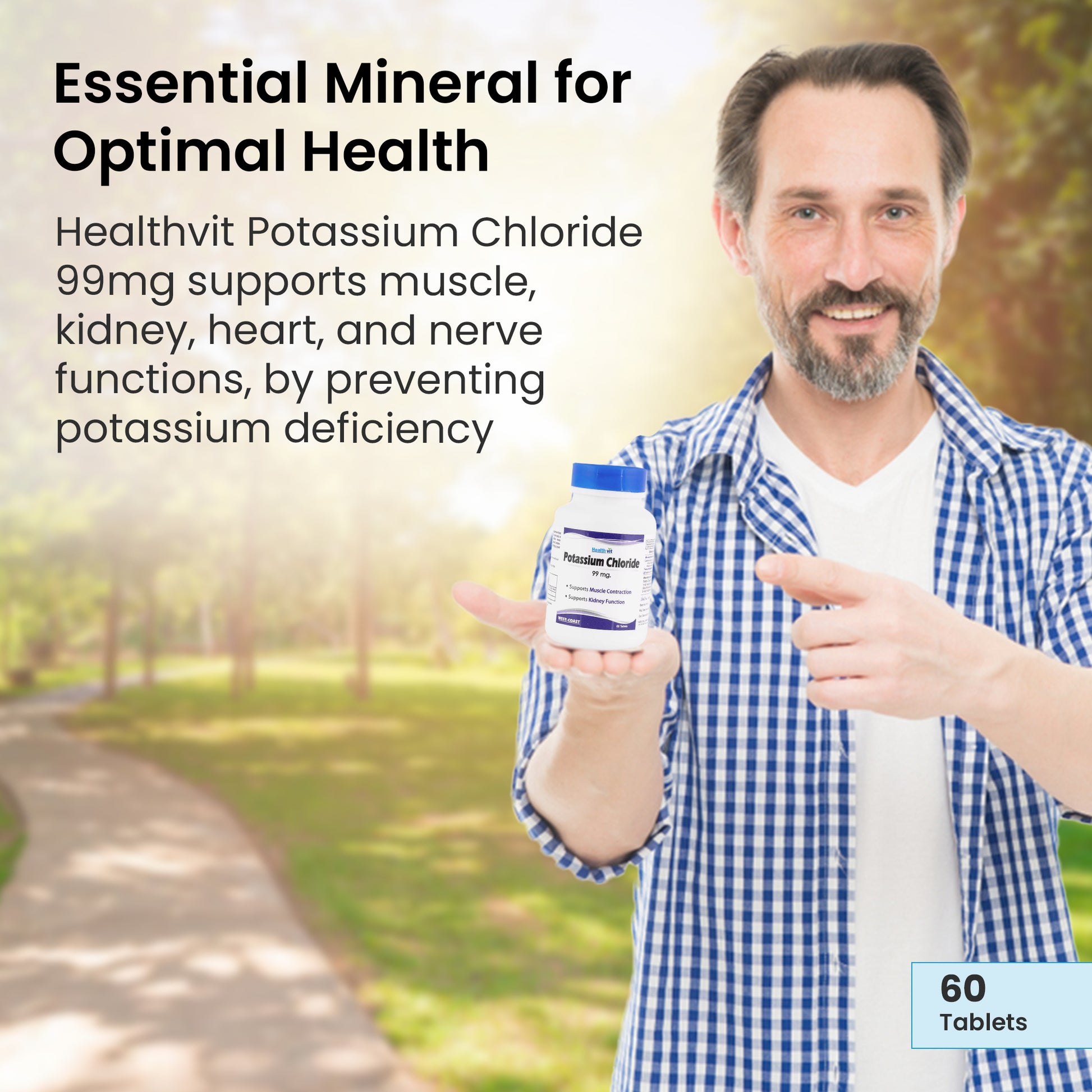 Healthvit Potassium Chloride 99mg As Best Source Of Potassium | Maintain Normal Healthy Skeletal | Maintain Muscle Function And Nerve impuses | Vegan And Gluten Free | 60 Tablets