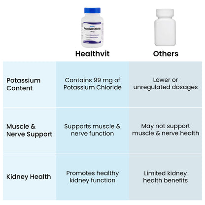 • HIGH-POTENCY FORMULA: Each tablet contains 99 mg of potassium chloride to support muscle health, nerve function, and electrolyte balance.