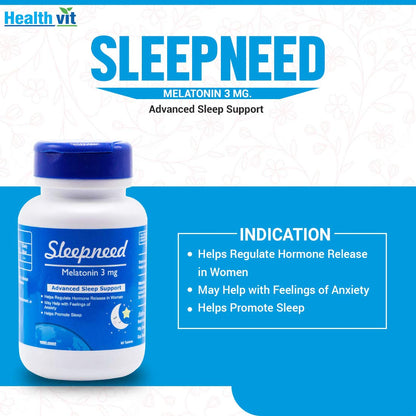Healthvit Sleepneed Melatonin 3mg | Formulated to Promote Peaceful Sleep | Advanced Sleep Support | Stay Asleep Longer, Easy to Take, Faster Absorption - 60 Tablets
