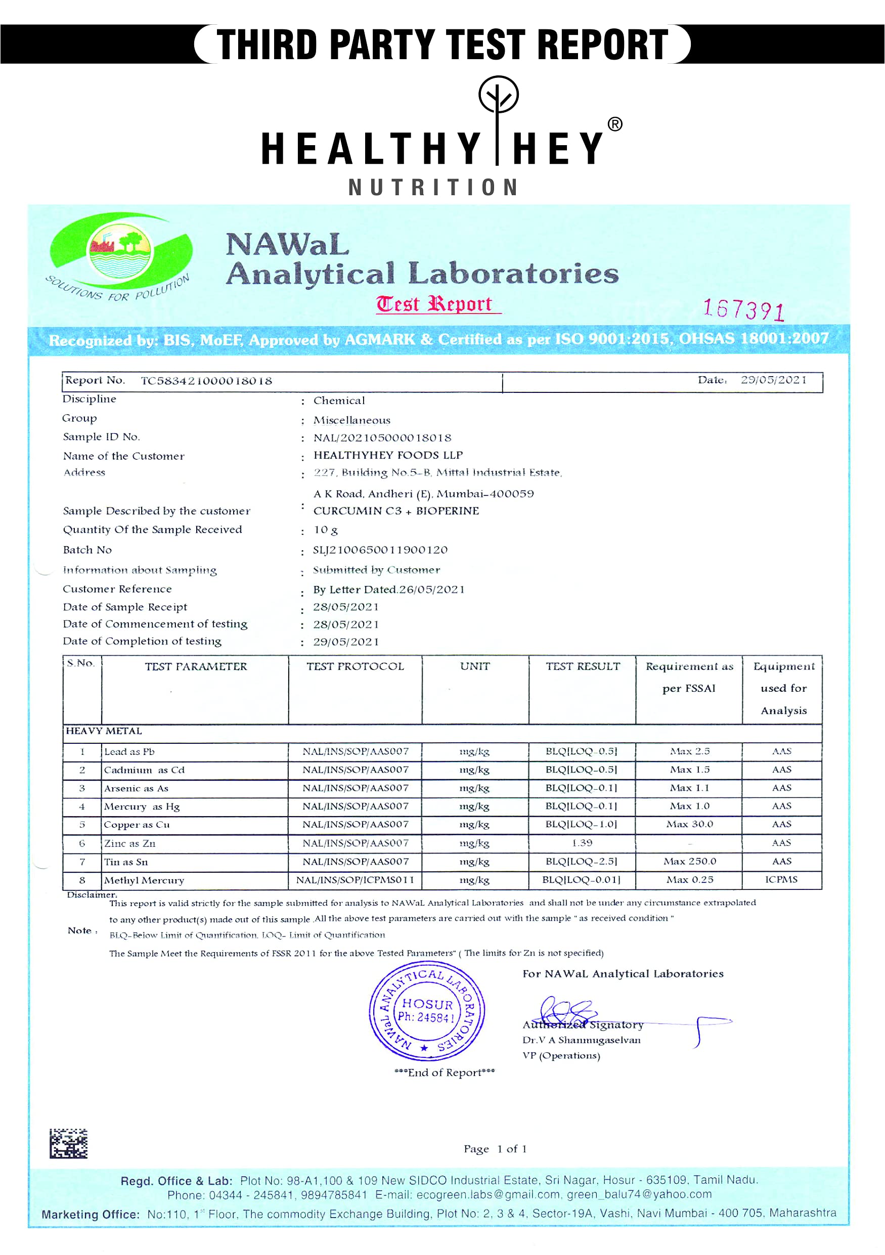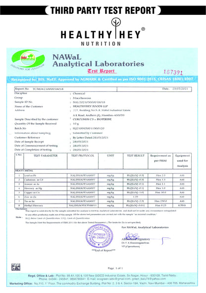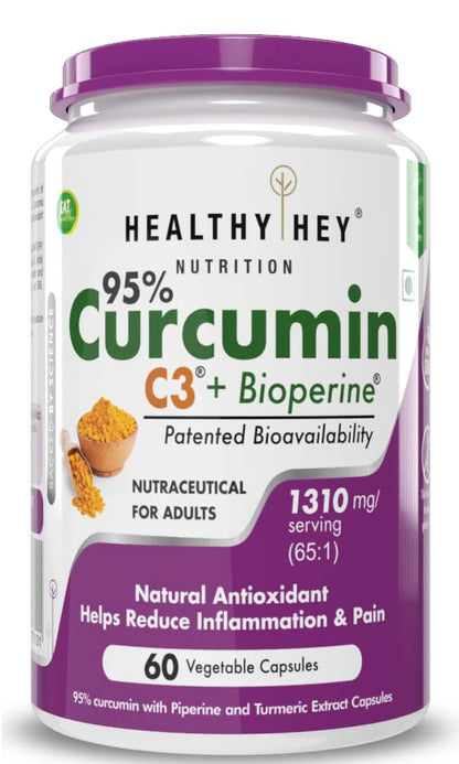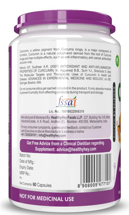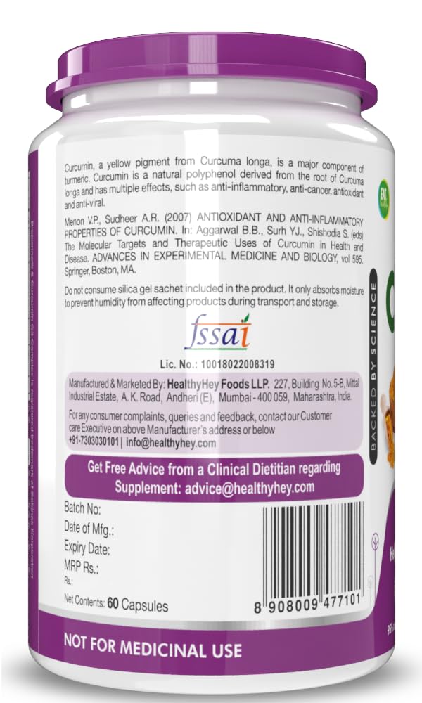 HealthyHey Nutrition Curcumin with Bioperine 1310mg (Ultra Pure) | Organic Turmeric, 60 Vegetable Capsules with Piperine