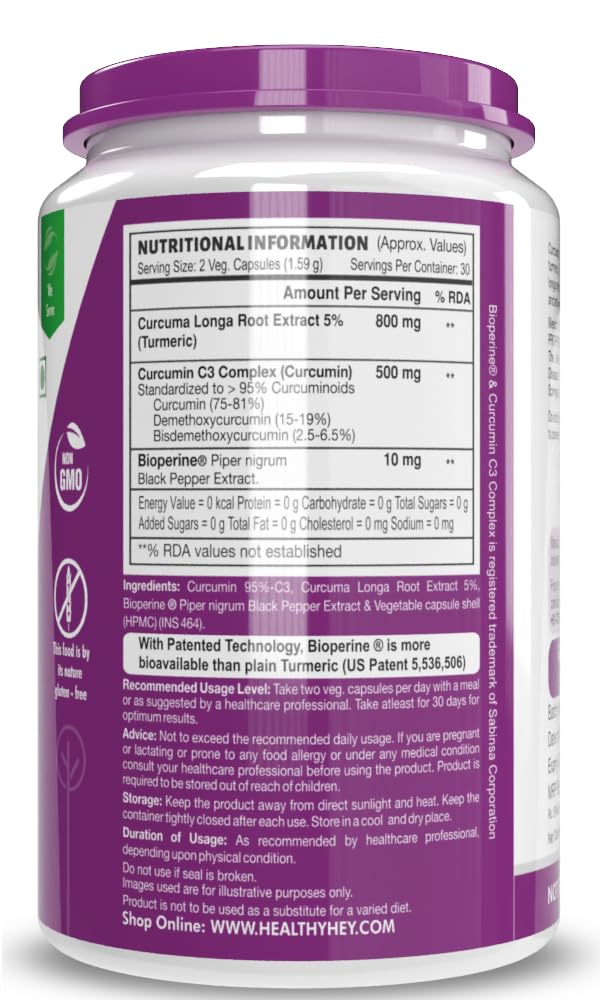 Introducing the HealthyHey Nutrition Curcumin with Bioperine 1310mg, a premium dietary supplement designed to enhance your health and well-being. Each bottle contains 60 vegetable capsules, delivering the highest potency of turmeric curcumin – a powerhouse ingredient renowned for its numerous health benefits. This product is carefully crafted using organic materials, ensuring you get the best nature has to offer without any harmful additives.