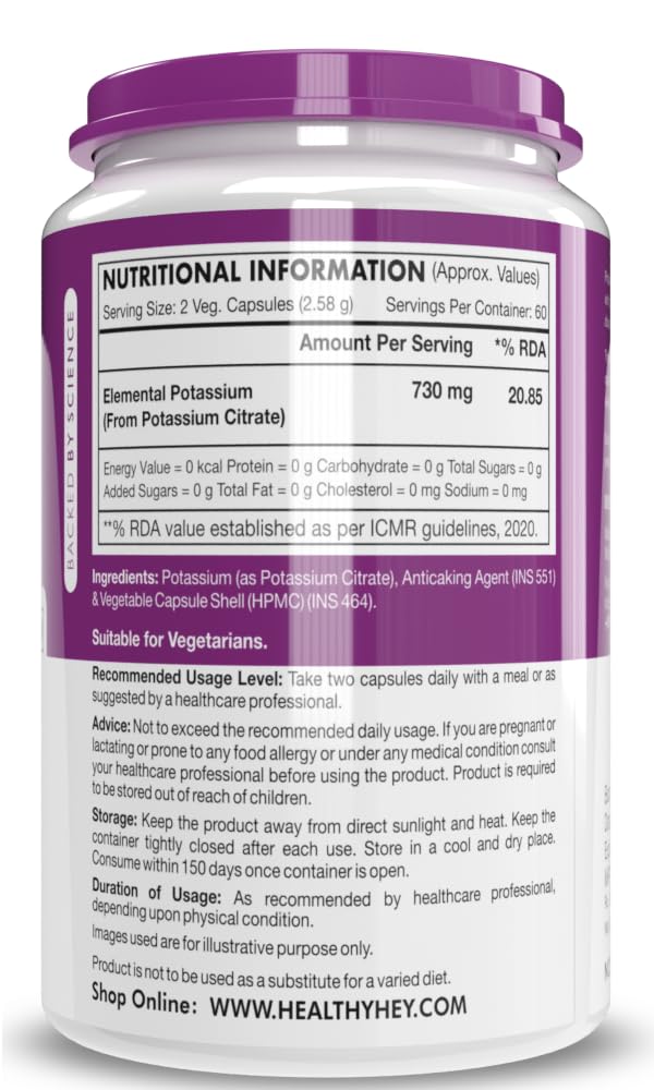 HealthyHey Nutrition Potassium Citrate -120 Vegetable Capsules