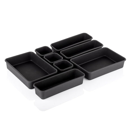 Heart Home Storage Organizer Set | Kitchen Organizer | Makeup Organizer Tray Set | Desk Drawer Divider Tray | Multi-Purpose Stationery Organizer with Interlock | 8 Piece Set | Black