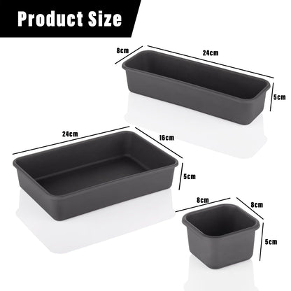 Introducing the Heart Home Storage Organizer Set by Kuber Industries, a versatile storage solution that includes 8 sturdy acrylic pieces in a stylish black finish. Designed to maximize your space, this organizer set comprises 2 large trays (24 cm x 16 cm x 5 cm), 3 medium trays (24 cm x 8 cm x 5 cm), and 3 small trays (8 cm x 8 cm x 5 cm). With its modern interlocking design, this set is perfect for creating a cohesive storage experience in your drawers.