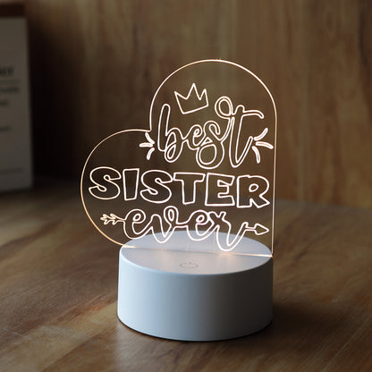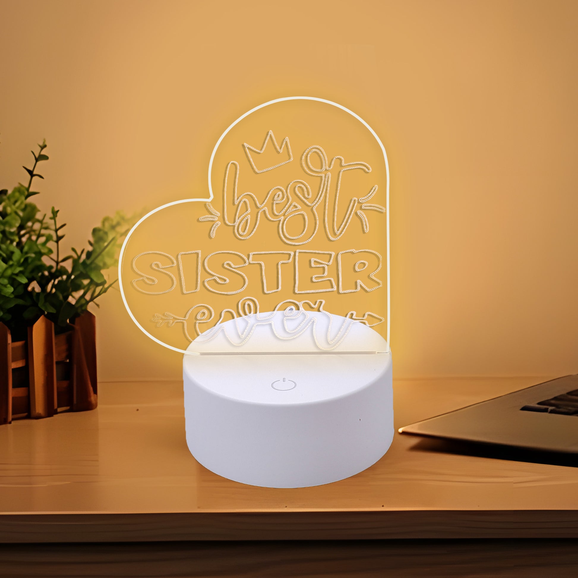 Introducing the Gleevers Acrylic Plaque with Stand Heart Shape LED Light, a heartwarming gift that your sister will cherish. This beautiful plaque weighs only 120g and measures 15.9 x 11.9 cm, making it the perfect addition to her room or any special place in her home. Crafted from durable plastic, it features an elegant LED light that enhances its charm, making it a standout piece for any occasion.