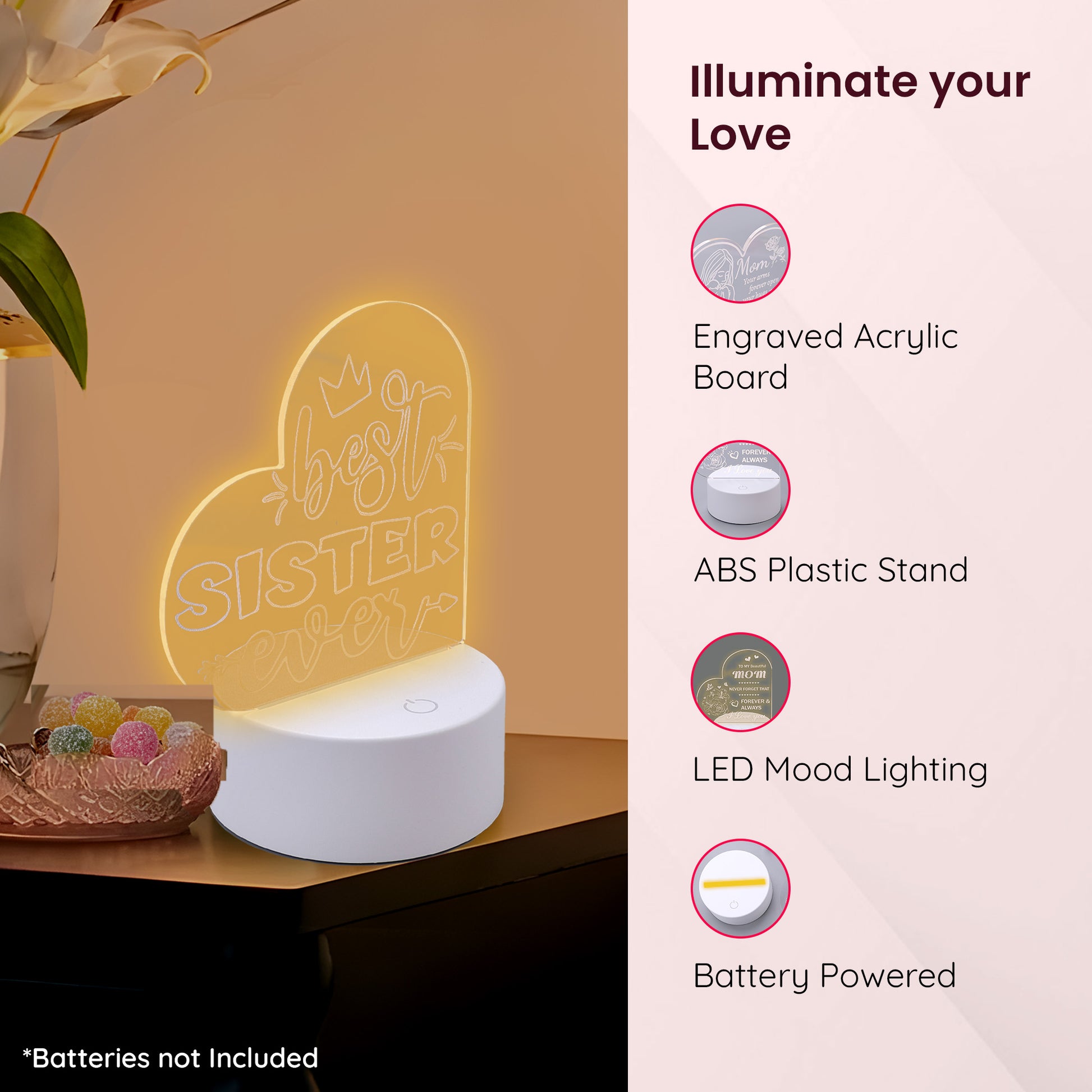 • CUSTOMIZED GIFT OPTION: Its heart-shaped design and glowing LED feature make it a memorable gift for your sister or best friend, ensuring it stands out on any occasion.