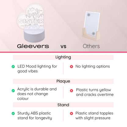 Whether it’s for a birthday, Rakhi, or just to show appreciation, the Gleevers Acrylic Plaque is not just a gift but a heartfelt expression of love. Make her day even more special with this charming and thoughtful piece.