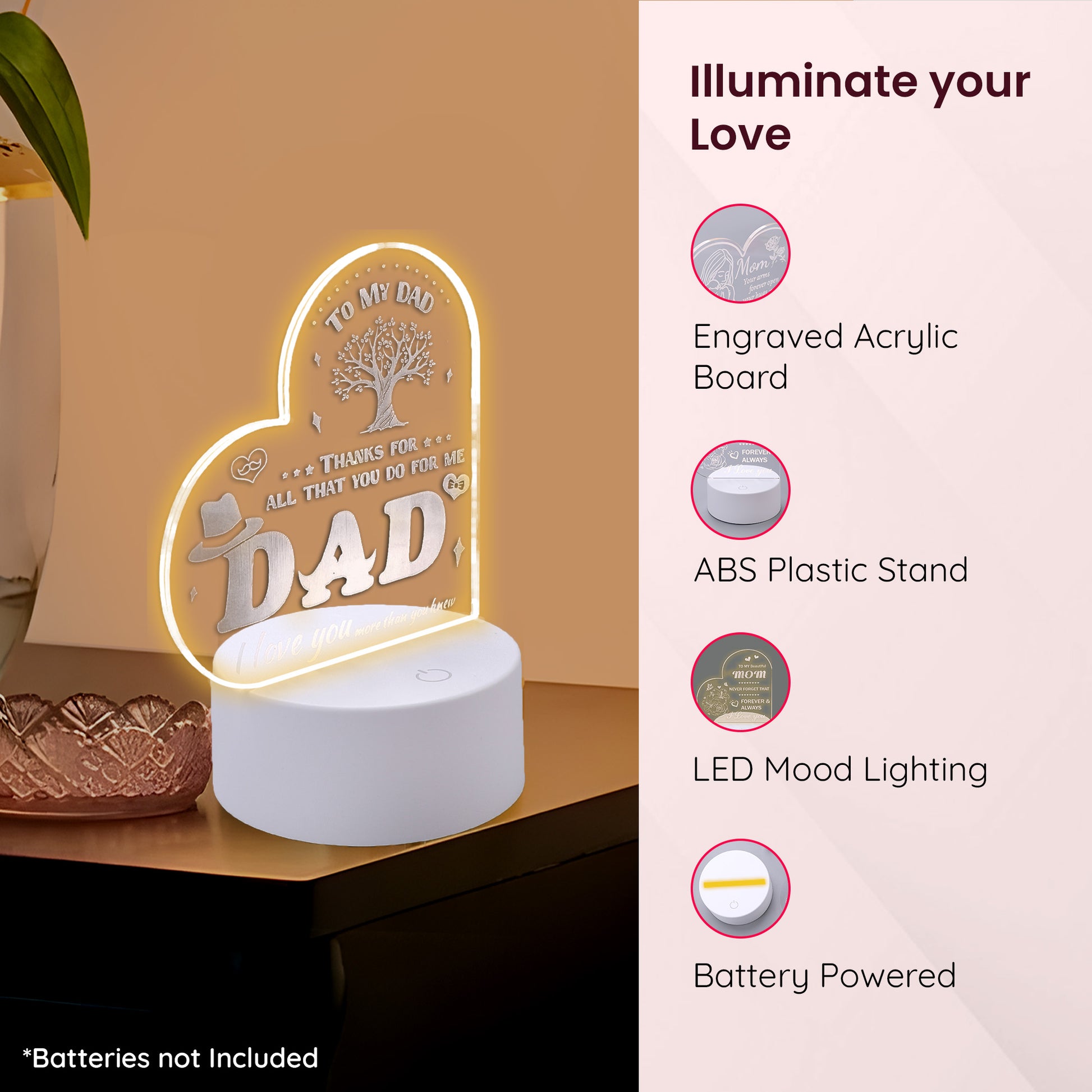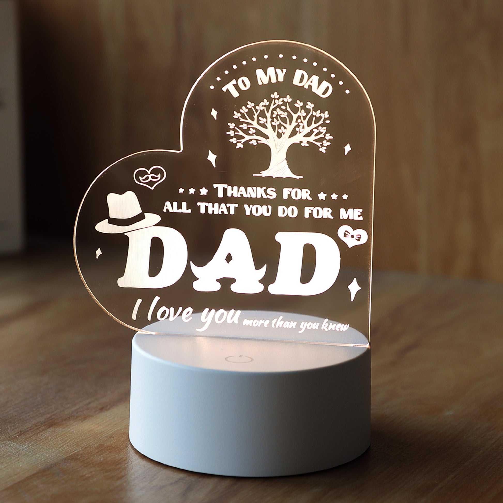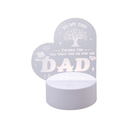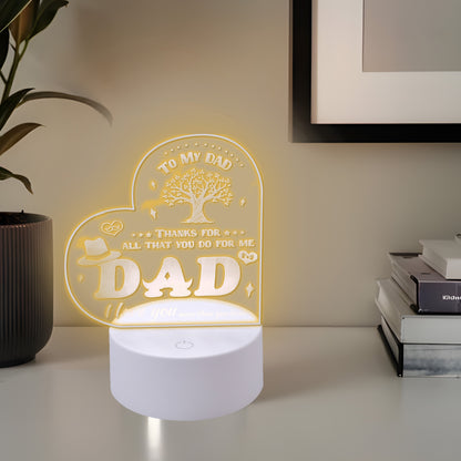 Acrylic Plaque with Stand LED Light|Birth Day Christmas Special Occasion|Gift for Dad Grand Father Father's Day|Heart Shaped Engraved Night Light|Best Birthday Gift for Dad|1 Pack.