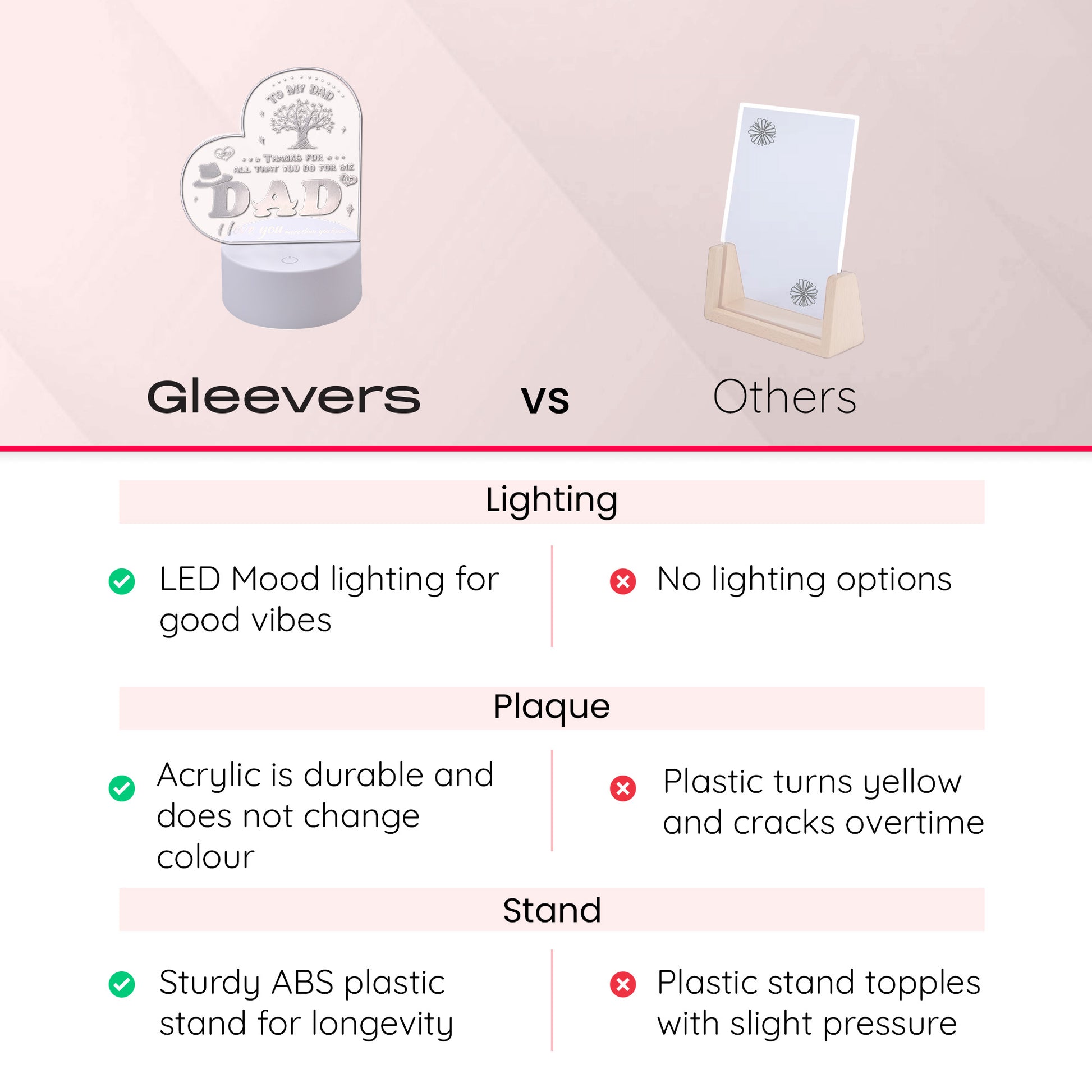 Gleevers Acrylic Plaque with Stand LED Light|Birth Day Christmas Special Occasion|Gift for Dad Grand Father Father's Day|Heart Shaped Engraved Night Light|Best Birthday Gift for Dad|1 Pack.