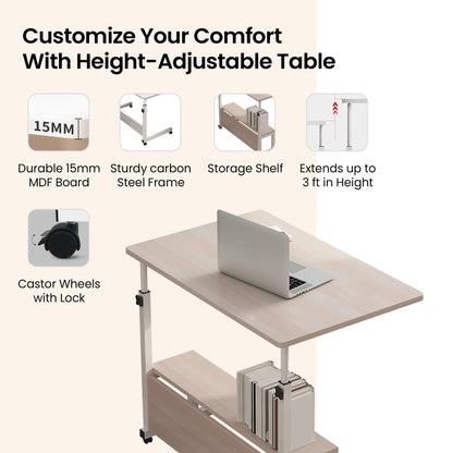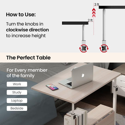 Savya Home Height Adjustable Table, Portable Table| Study Table For Students, Computer Table For Office Work, Home, Couch, Bedside | Space Saving Design, Natural Brown, 1 - Engineered Wood